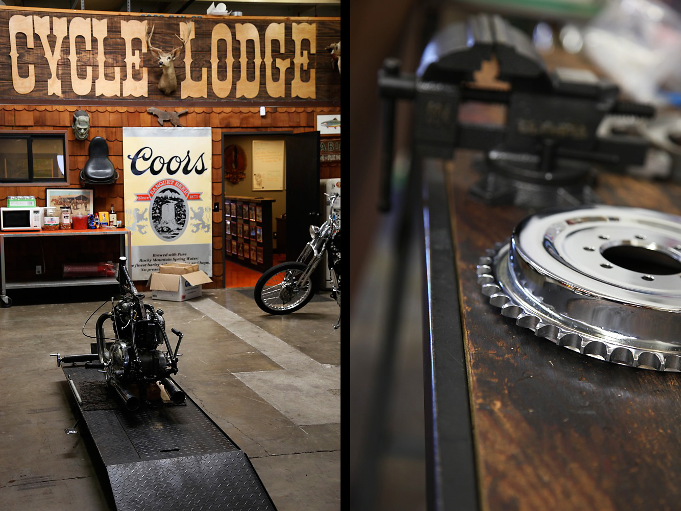 There's still some cool unreleased stuff from our So-Cal trip lying around on my harddrive... like those pics from our visit at the Cycle Lodge in Orange. The shop is run by Mike Davis (Born Loser) and Grant Peterson (Freedom Machinery), the guys who put up the annual Born Free Show. Too bad we missed it as we had to head back to Europe two weeks before. But if you ever happen to be in the town of Orange, do it like we did and check out their shop.