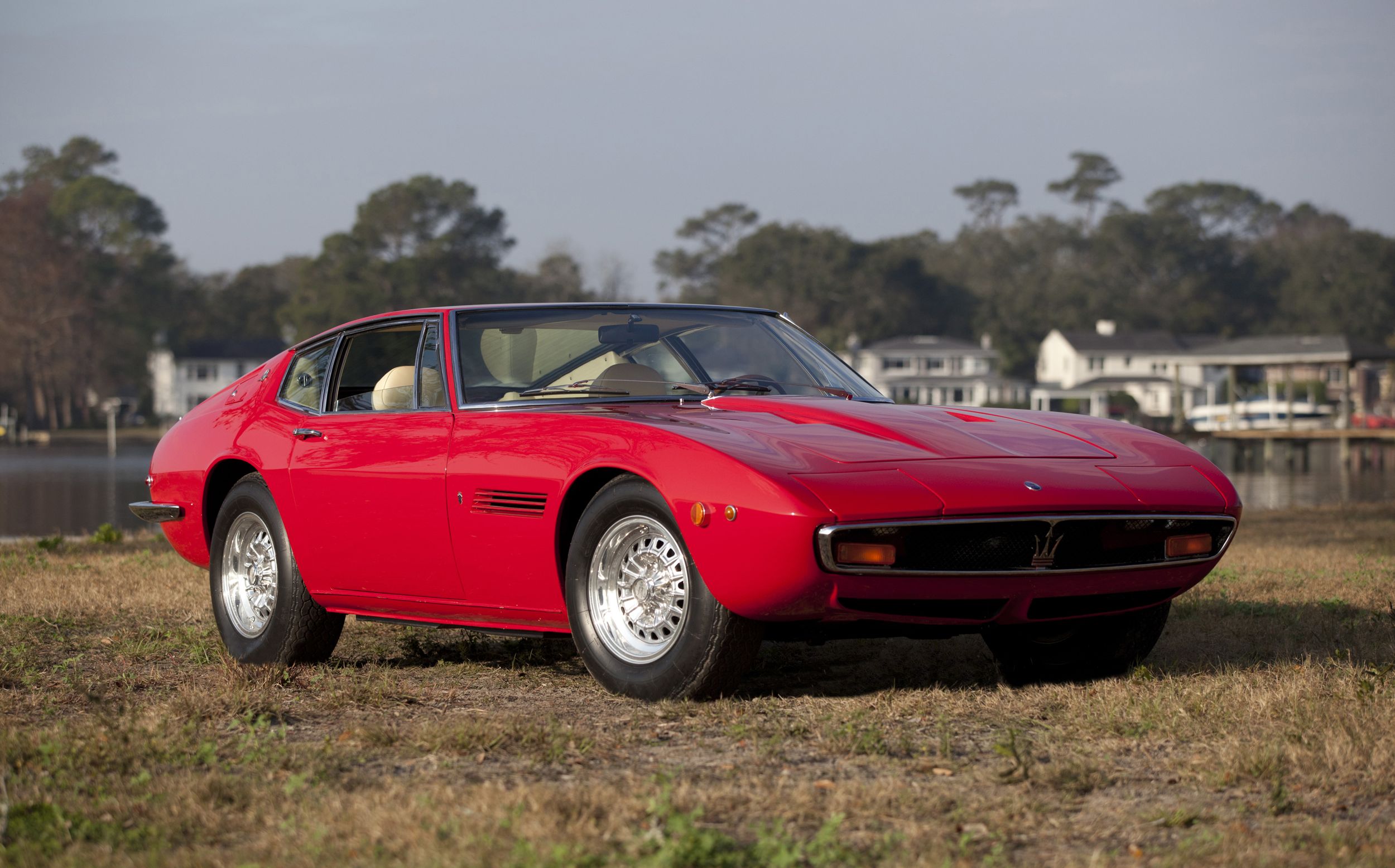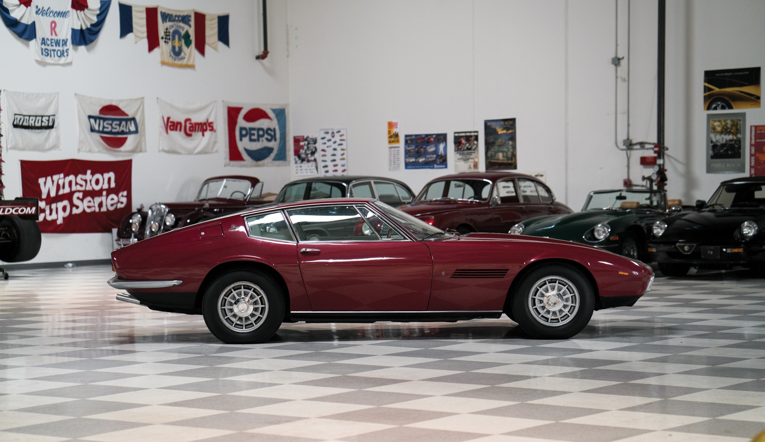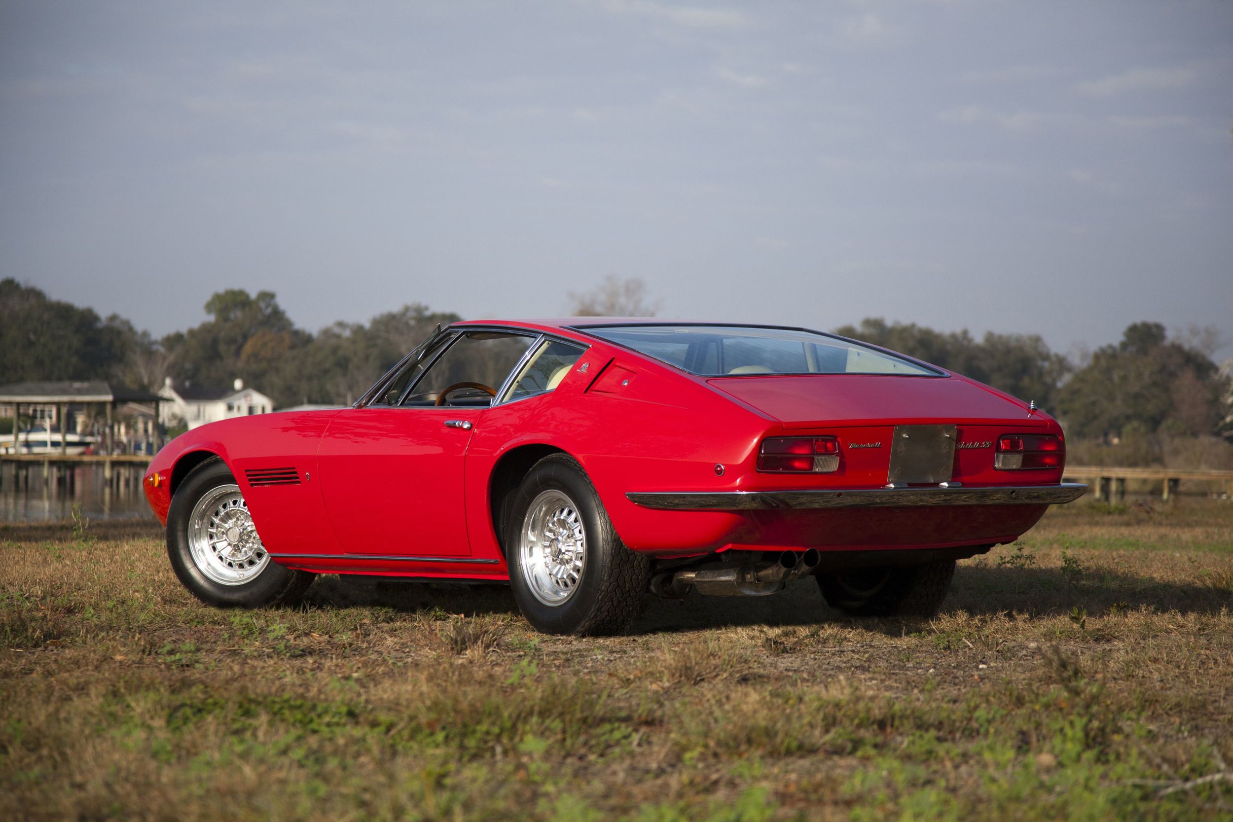 In jenen wilden Jahren 1988/89, als die Spekulanten die Oldtimer entdeckten, schossen die Preise für Ghiblis auch einmal über die Millionengrenze. Danach stürzten sie gnadenlos ab, dümpelten, zumindest in Europa, lange in einem ganz knapp sechsstelligen Bereich, unterdessen sind es so ab 120’000 Euro; für die Spyder wird natürlich mehr bezahlt, so etwa eine Viertelmillion Franken, doch viele Spyder sind gar keine, sondern Umbauten. Immerhin: die Ghibli gelten als zuverlässig, auch die Lage an der Ersatzteilfront ist (pekuniär) nicht so ernst wie bei Ferrari und Lamborghini. Es kommt gerade wieder mal ein schöner Ghibli, ein 68er in Dunkelrot, unter den Hammer, er wird von RM Sotheby’s auf ab 160’000 Dollar geschätzt – wir zeigten ihn schon oben im Detail.