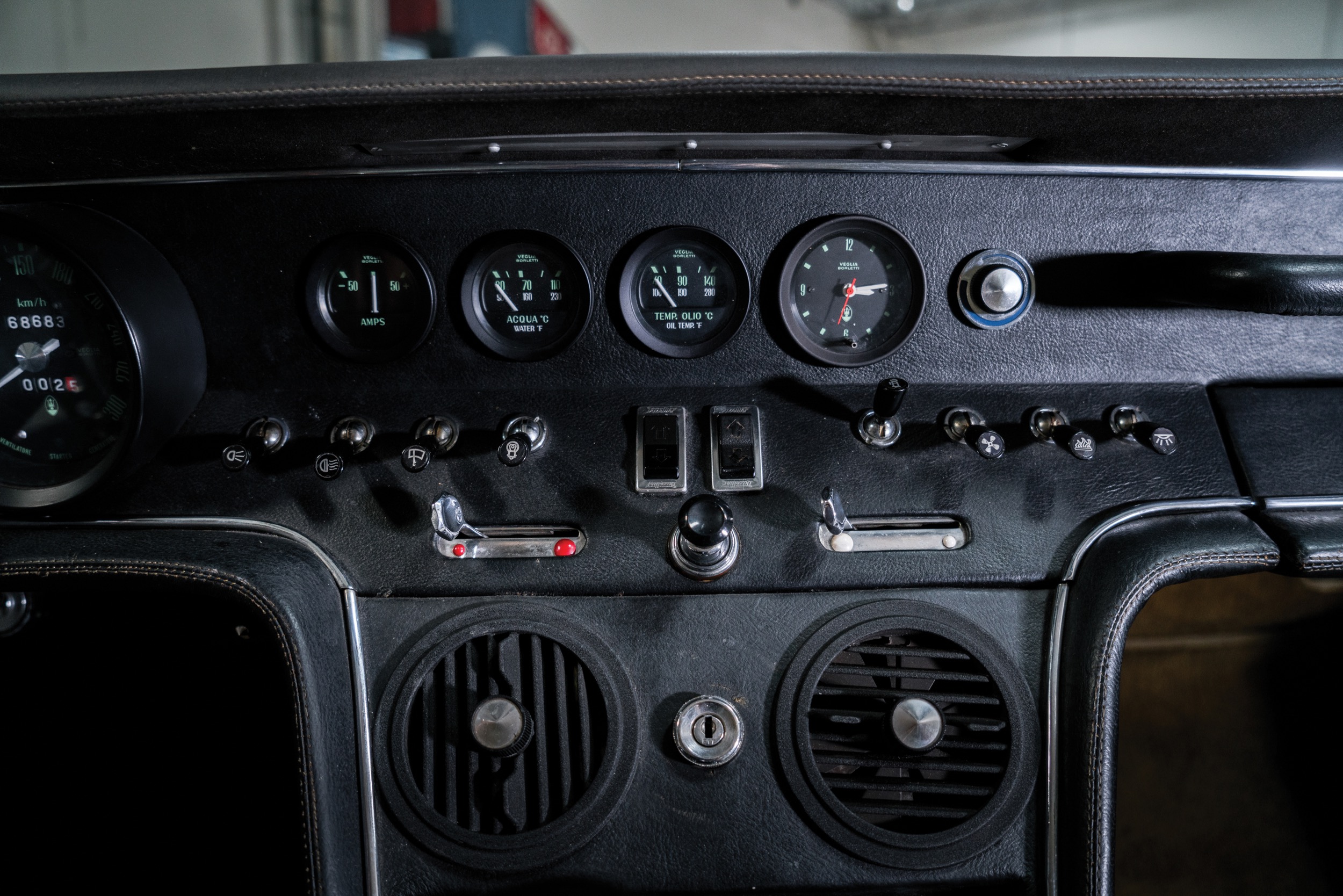 Und ja, man darf das Fahrverhalten des Ghibli als schroff bezeichen – ohne Ankündigung geht er hinten weg. Und dann ist man ziemlich am Rudern am Lenkrad, das braucht dann auch noch Kraft, denn Servo gab es damals nur gegen Aufpreis. Im Stand will man daran nicht so richtig arbeiten müssen, aber einen Ghibli darf man zumindest in Italien auch mal in der zweiten Reihe parkieren. Es sind also nicht die grossen Abenteuer, die man versuchen will bei diesen Strassenverhältnissen, denn man hat ja Respekt, wir bewegen hier eine Ikone, ein Meisterwerk – das mehr (Be)Achtung verdient hätte. Er hat gut Kraft aus dem Drehzahlkeller, so lässt es sich über Land ganz entspannt cruisen. Das 5-Gang-Getriebe von ZF (das seine Karriere in einem Hanomag begonnen hatte) braucht gar nicht einen derart hohen Kraftaufwand, wie man mir immer erzählt hatte. Aber man mus halt schon konsequent das tun, was man vorhat, so ein bisschen Geschiebe mag der nicht, der Maserati. Und in langgestreckten Kurven, auf Zug, präzis gefahren, geht das auch ein bisschen schneller. Und ja, wenn man sich an das schwankende Heck gewohnt hat, weiss, dass es in den unmöglichsten Momenten seine ganz eigenen Wege gehen will, dann. Doch es ist eben: Gran Turismo. Aus den späten 60ern. Auch bei Sound aus diesen viel zu langen Endrohren. Nicht so sportlich wie ein Daytona, bei weitem nicht so konsequent wie der Miura – und unbedingt sein Geld wert. Auch in Zukunft.