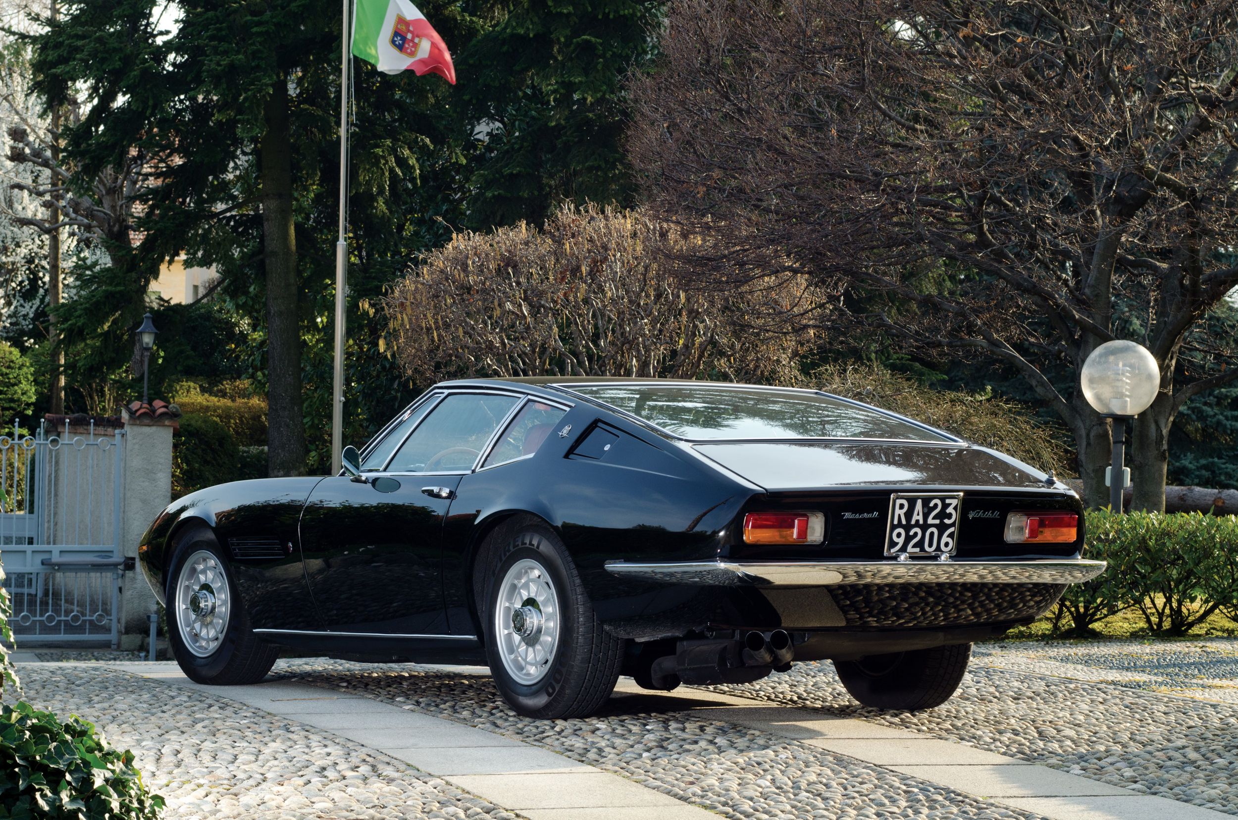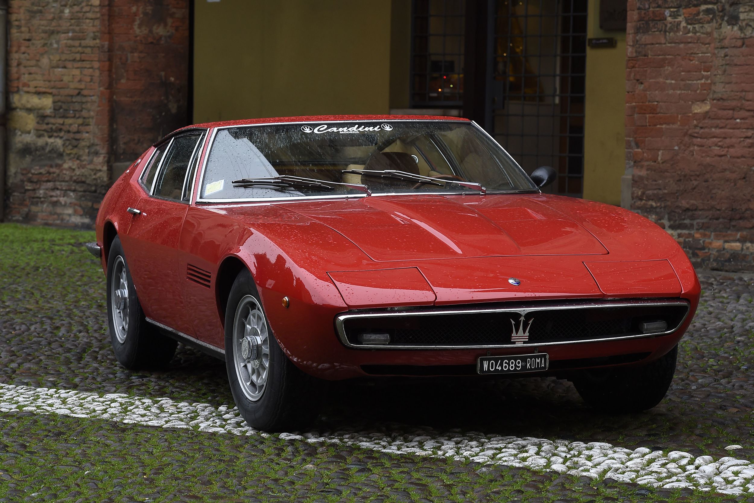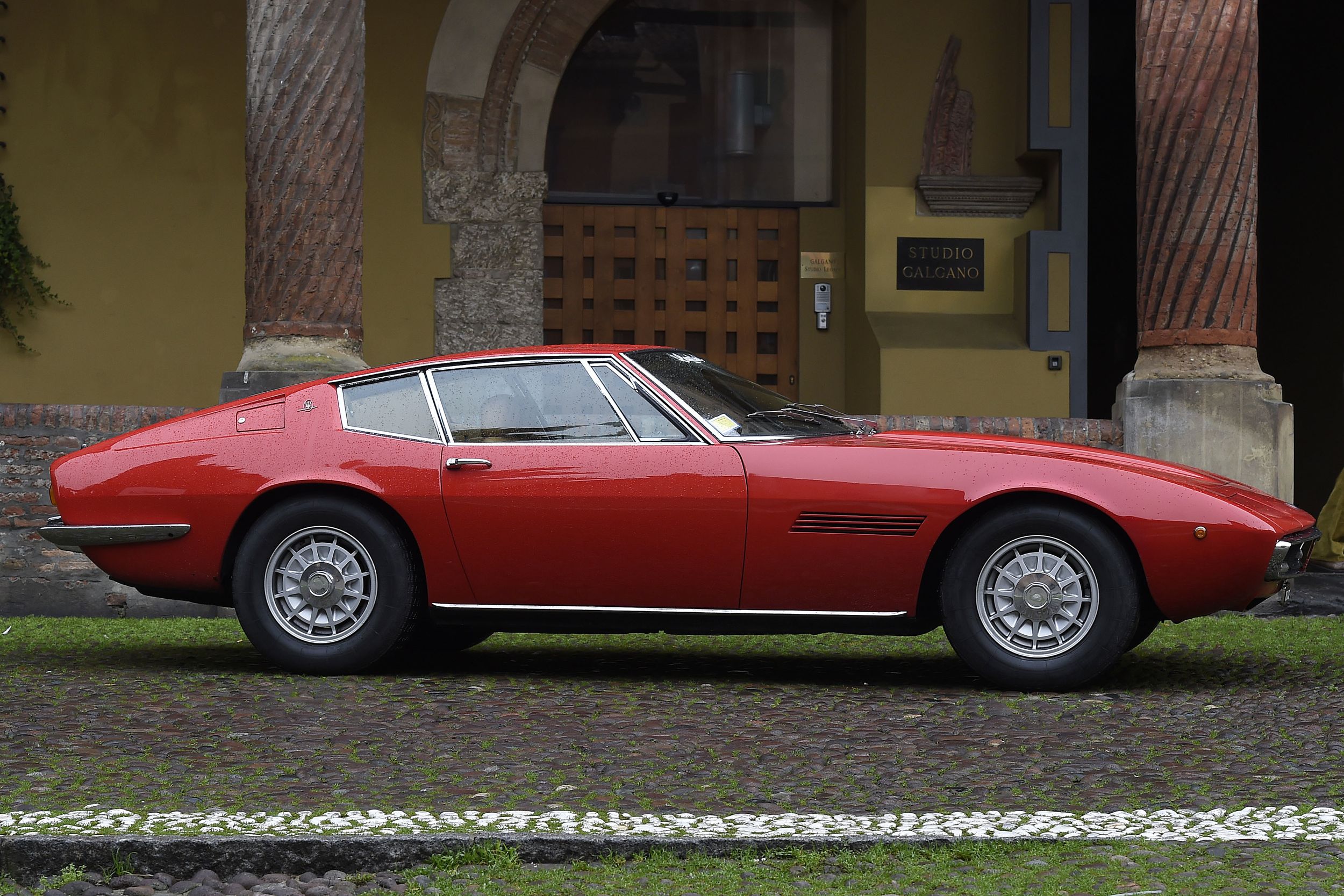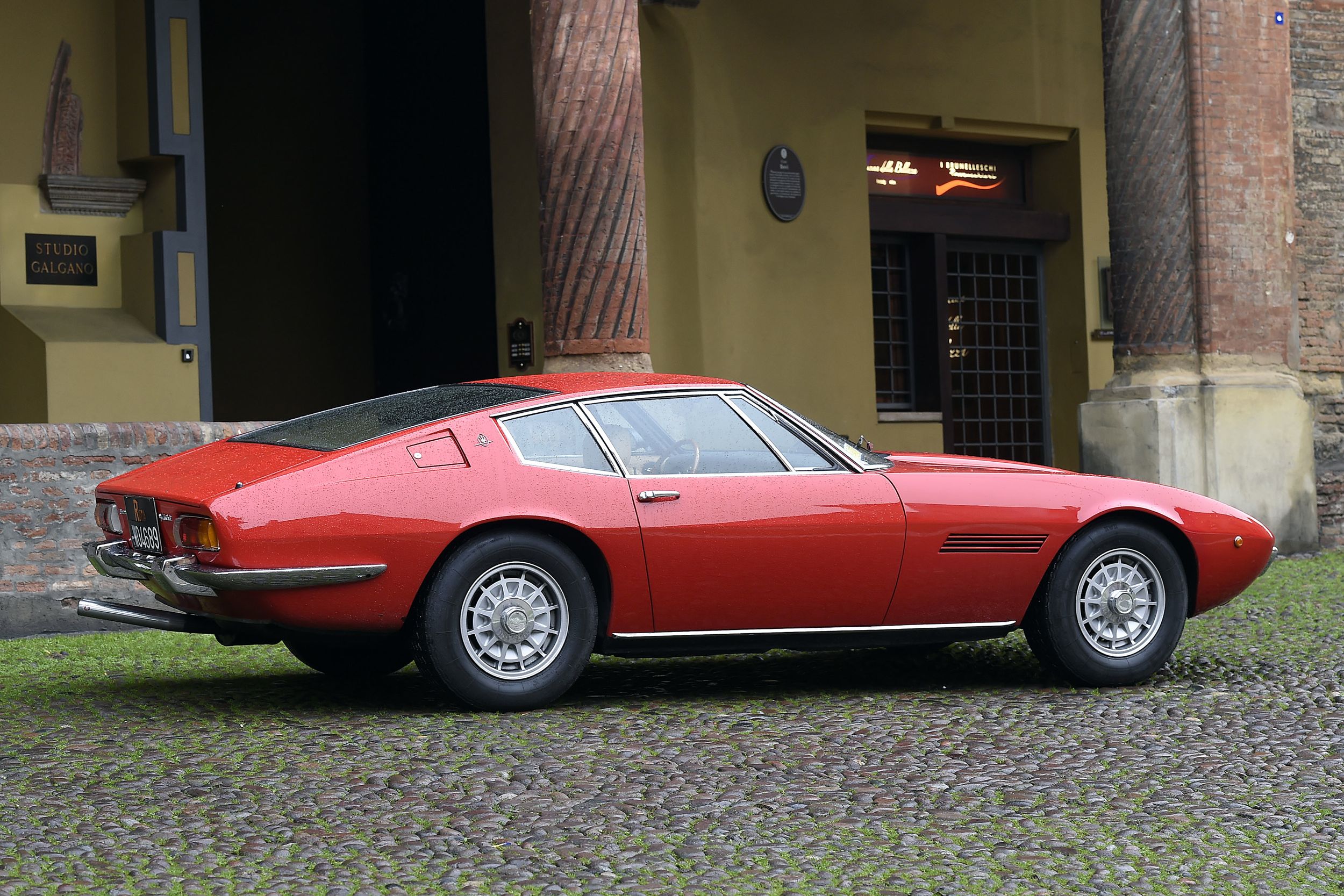 Doch wie wusste schon der Italienkenner Goethe: Grau, treuer Freund, ist alle Theorie, und Grün des Lebens goldner Baum. Und deshalb nun noch die eigene Erfahrung, buchstäblich. Wir fuhren dann aber nicht den goldenen Ghibli, der auch zur Verfügung gestanden wäre, sondern den roten. Denn Rot passt einfach besser, zu Italien, zu Maserati, zum Ghibli – gülden sind seine Linien etwas gar weich, zu süsslich, und das passt irgendwie zum genialen Wurf von Giorgetto Giugiaro. Man muss ihn sich schon unbedingt einmal genauer ansehen, diesen Ghibli. Nicht bloss, wie er so dasteht auf der schönen Piazza Santo Stefano in Bologna, Kopfsteinpflaster, Kirchen im Hintergrund. Sondern auch im Geist seiner Zeit. Man stelle sich einen Miura vor daneben – und der Lambo wird wirken wie ein grober Klotz. Oder einen 365 GTB/4, also Daytona von Ferrari; ein Prahlhans. Der Maserati ist unglaublich filigran, nicht nur, weil er auf (für heutige Verhältnisse) sehr schmalen Gummis steht, alles wirkt zierlich und fein an diesem doch 4,59 Meter langen, 1,8 Meter breiten und 1,16 Meter hohen Meisterwerk. Die Linien sind so wunderbar schlicht, harmonisch, da ist kein Strich zu viel – ausser vielleicht diese unendlich langen Auspuffendrohre, die sind zwar irgendwie cool, aber auch ein wenig ein Fremdkörper. Auch wenn der Ghibli in Sachen Fahrleistungen damals nicht mit dem Miura und dem Daytona mithalten konnte – beim Design wird er wohl gewinnen. Oder doch der Miura, der halt ein Gandini ist, so ganz anders? Ach, ich weiss es nicht. Aber ich muss es ja auch nicht wissen, sind eh beide so ein bisschen ausserhalb meiner Reichweite.