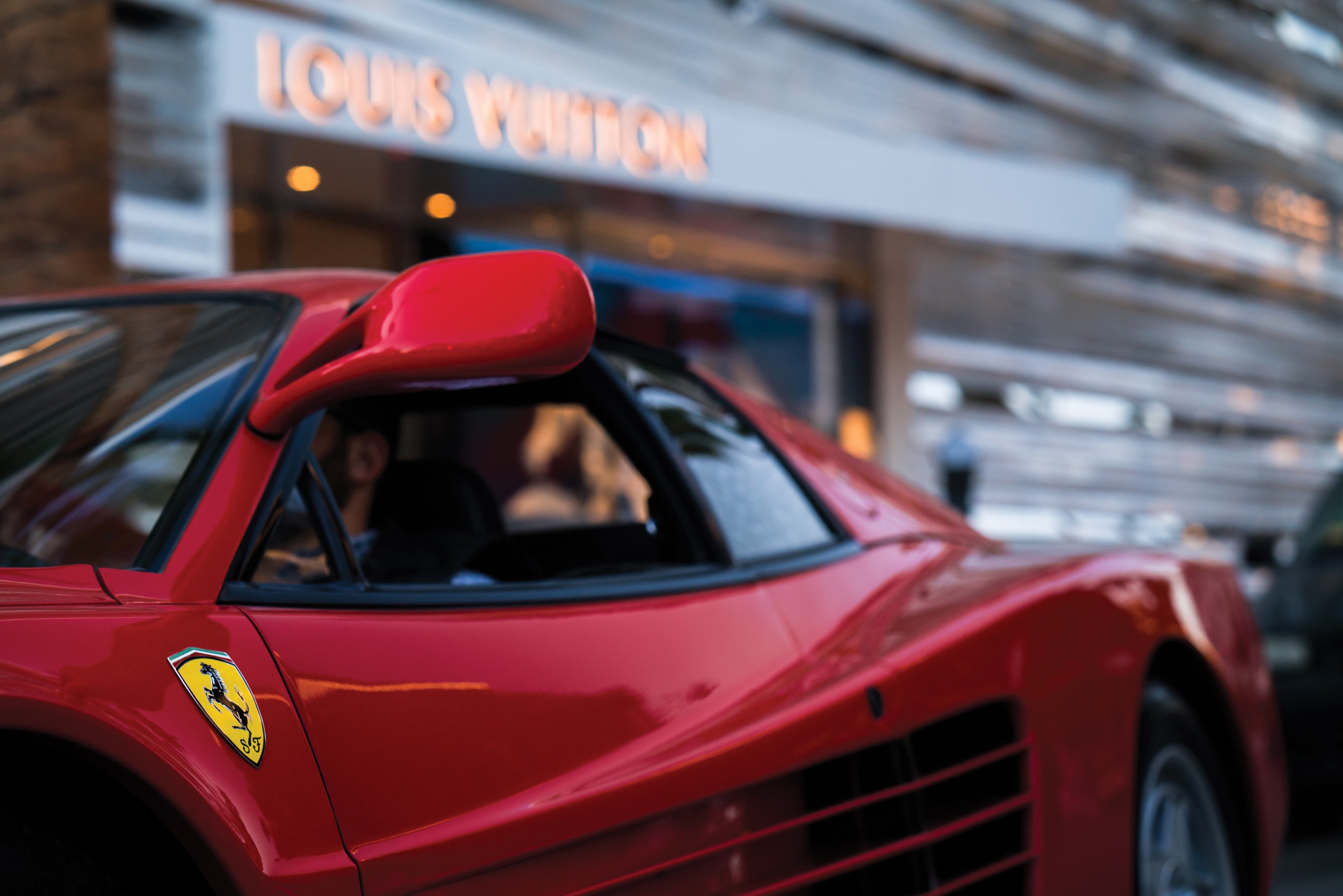 Es gibt doch immer auch um: die Details. Zum Ferrari Testarossa, seiner Geschichte hatten wir ja schon etwas geschrieben, hier nachzulesen. Doch es gibt da ja auch immer noch Unterscheide in Sachen Begehrlichkeit. Als der Testarossa als Nachfolger des 512 BBi am Vorabend des Pariser Salons 1984 im berühmt-berüchtigten Nachtclub «Lido» dem geneigten Publikum vorgestellt wurde, da sah er nämlich noch etwas anders aus als 1991 dann, als seine Produktion auslief. Die ersten Exemplare, wahrscheinlich etwa 300, sind in der Fachwelt bekannt als «Monospecchio» oder «flying mirror». Damit ist dann auch gleich klar, um was es sich beim angesprochenen Detail handelt: den hoch oben an der A-Säule angebrachten Rückspiegel. Spätestens ab 1987 wanderte das Teil nach unten, erhielt aufgrund der amerikanischen Gesetzesvorlagen auch bald schon einmal ein Brüderchen auf der anderen Seite des Wagens.