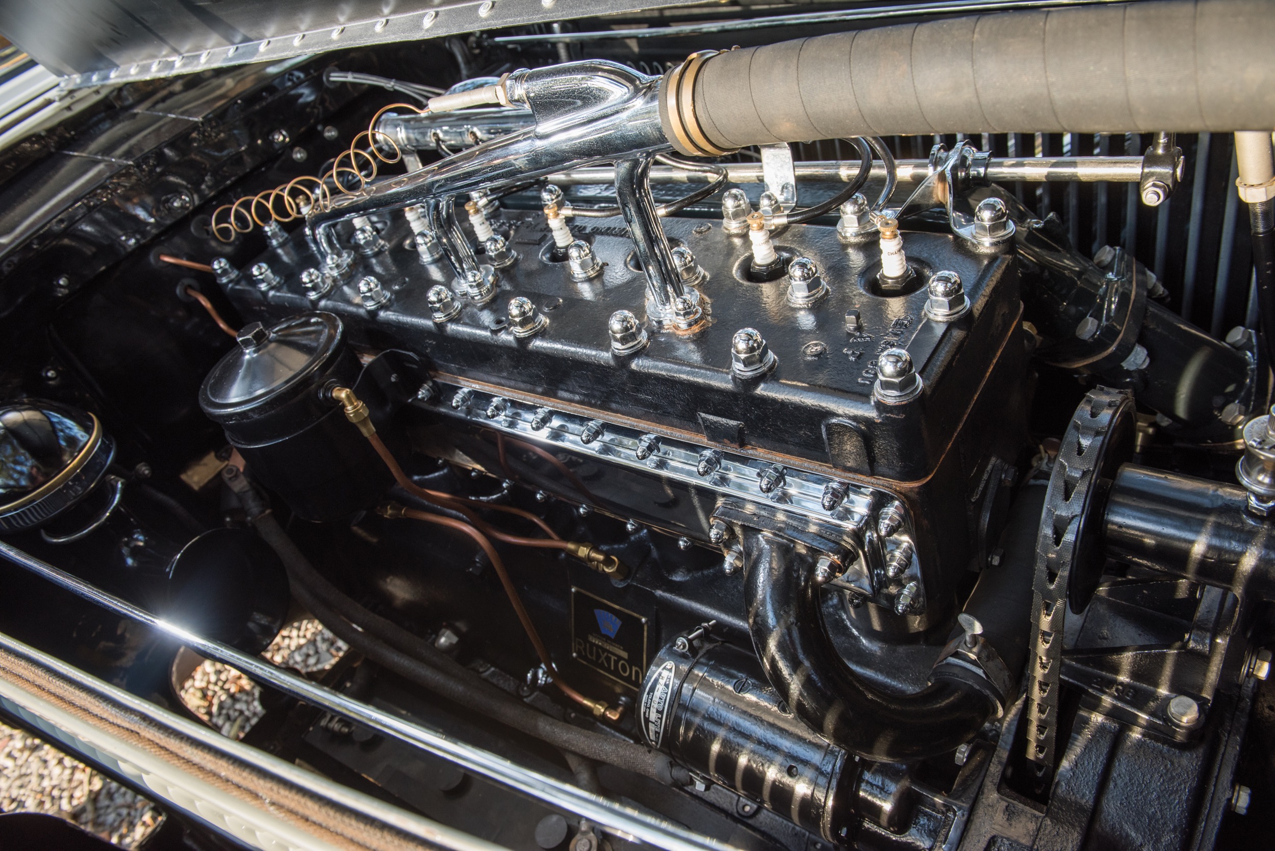 Eigentlich gab es Ruxton gar nicht. Das kam so: So etwa 1926 war ein amerikanischer Ingenieur namens William Muller davon überzeugt, dass dem Frontantrieb die Zukunft gehören würde. Er begann mit der Konstruktion eines Automobils, so quasi von: Null. Er baute also einen 4,4-Liter-Reihenachtzylinder, er baute auch ein manuelles 3-Gang-Getriebe, er baute alles zusammen und das Getriebe hinter das Differential (dafür musste er den Motor «verkehrt» einbauen) – und ging dann mit seiner Idee hausieren. Er kam damit zu Budd Coachbuilders in Philadelphia, damals einem der besten Namen unter den amerikanischen Karosseriebauern, und konnte Archie Andrews, einen der Geschäftsführer von Budd, von seinem Projekt überzeugen. Andrews wiederum hatte beste Beziehungen zur Wall Street, suchte dort Investoren – und schoss das Geld vor, damit mit dem Bau des Fahrzeugs begonnen werden konnte. Zu seinem Namen kam Ruxton, weil Andrews den steinreichen William V.C. Ruxton überzeugen wollte, sein Geld auf das Projekt zu setzen. Das Problem: Ruxton machte nicht mit – aber die neue Marke hatte jetzt einen Namen. Noch ein anderes Problem: die Produktion lief wenige Tage nach dem «schwarzen Freitag» (der eigentlich ein Donnerstag war…), dem Börsen-Crash von 1929, bei der Moon Motor Car Company in St.Louis an. Der Ruxton war nichts anderes als das erste frontgetriebene US-Auto – allein schon das sichert ihm einen prominenten Platz in der Automobil-Geschichte.