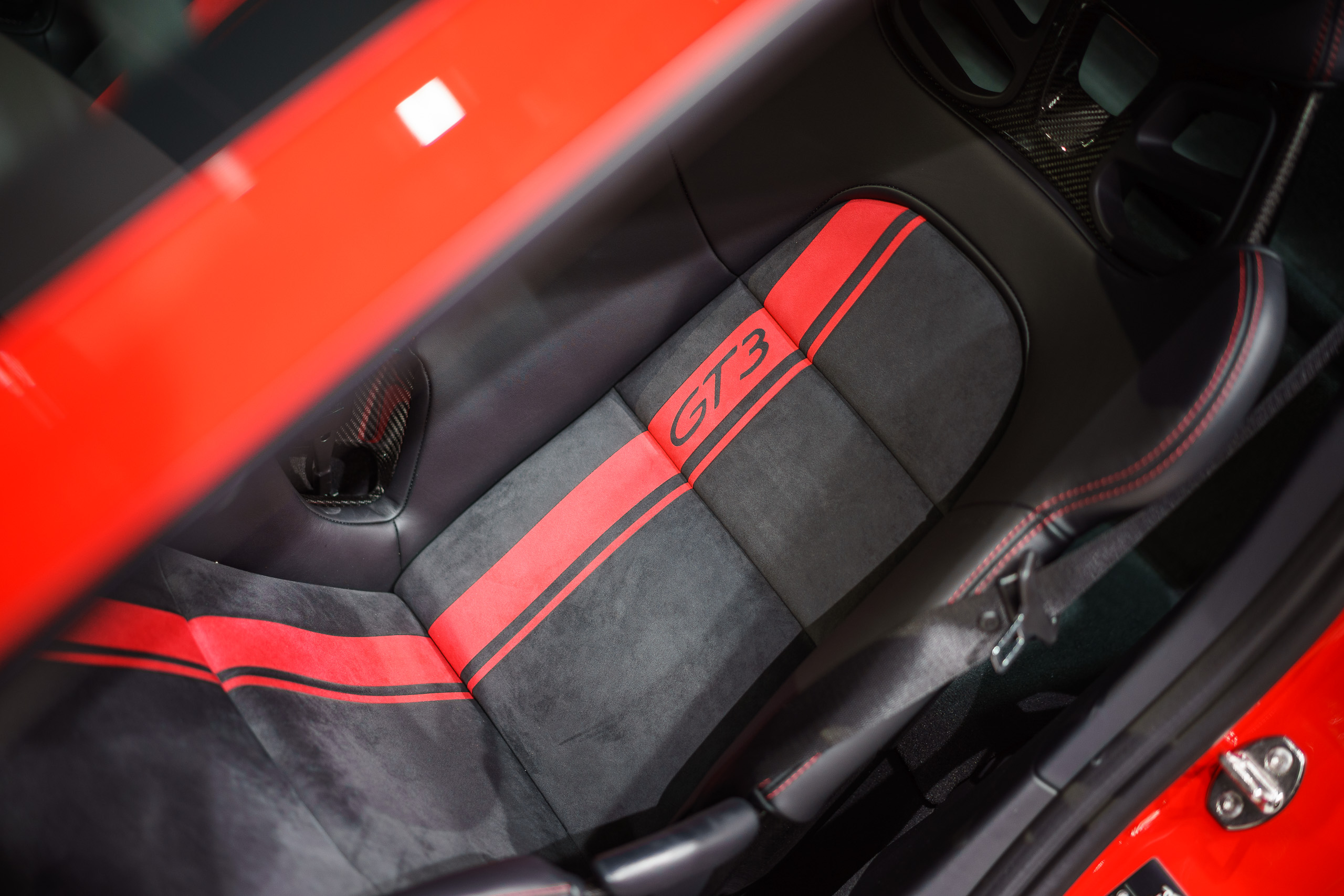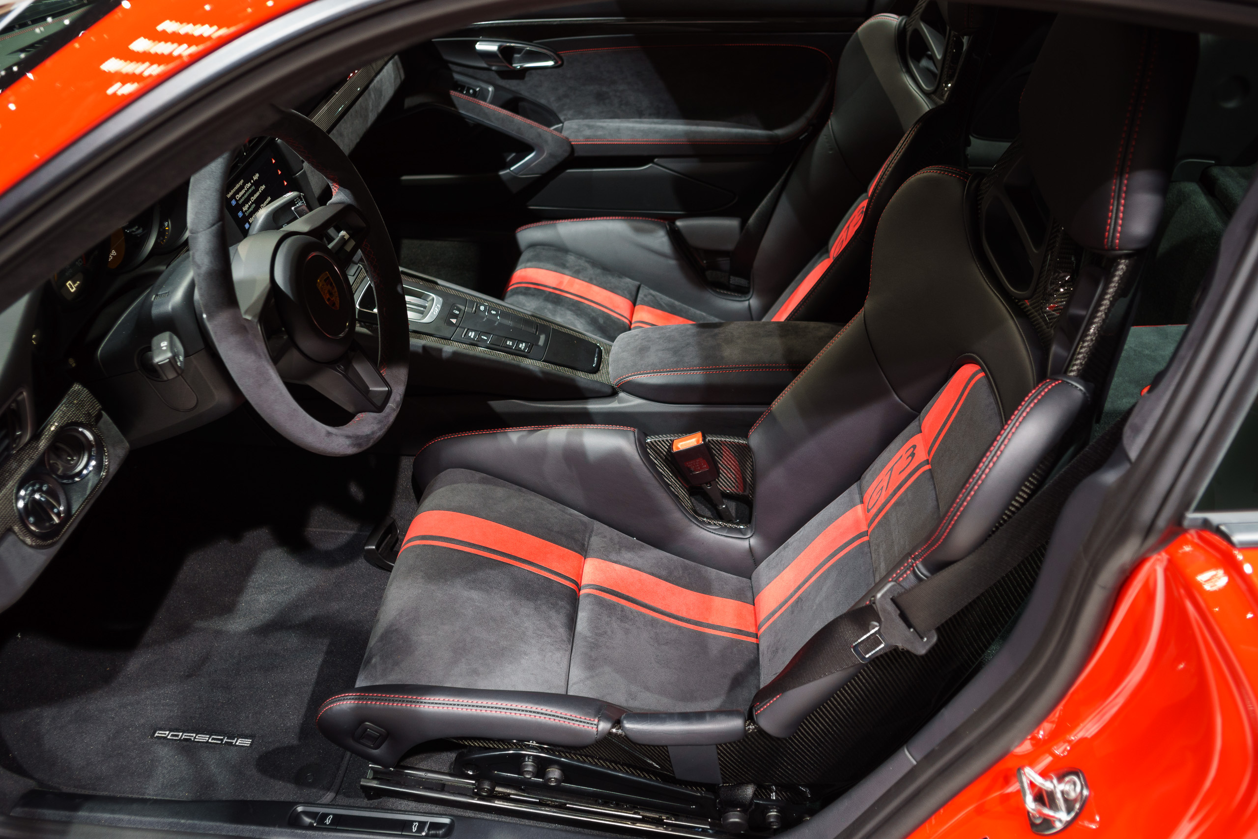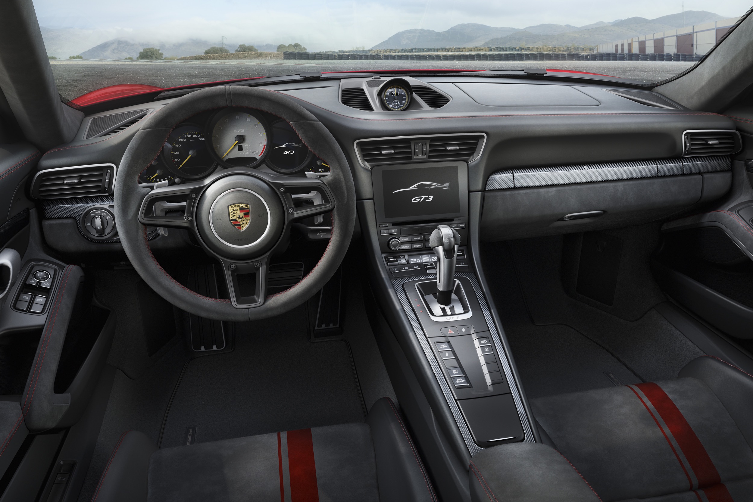 Dass das Ganze innen nun mit ein paar roten Streifen kommt, schwarze Applikationen hier und dort hat, ist eh wurscht, wenn der Kunde die Klaviatur der Exclusive-Abteilung durchspielt und die Preise in schwindelnde Höhen jazzt. Offiziell startet das alles ganz undramatisch weiter unter der 200.000er Marke – fragt sich nur wie lange. Immerhin wollen sie ihn nicht künstlich verknappen. Jeder. der einen haben möchte, der soll einen bekommen. Wobei, nicht ganz, oder zumindest: noch nicht ganz. Das manuelle Getriebe wird erst ab Herbst verfügbar sein. Die ersten Produktionsmonate wird es also ausschliesslich PDK-GT3s geben.