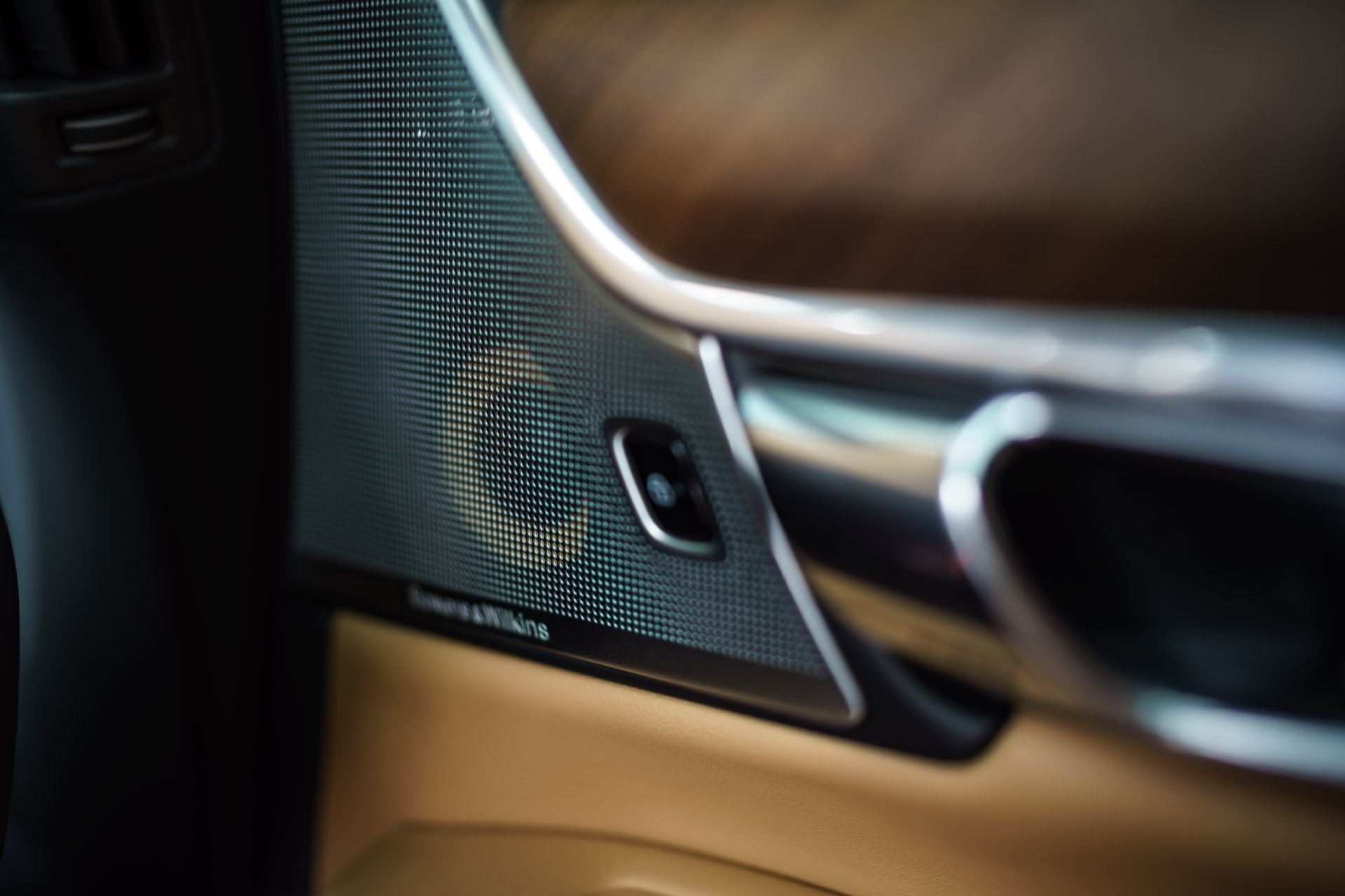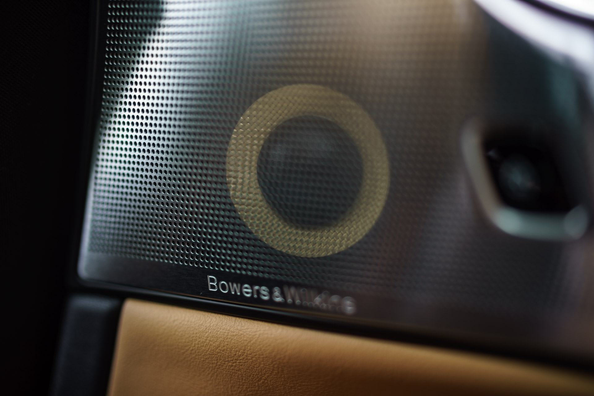 Die Speaker sind dabei unverkennbar B&W: der Nautilus-Hochtöner etwa, mit seiner charakteristischen Röhre. Oder die gelben Kevlar-Membrane des Mitteltons. Auch die Positionierung der einzelen Lautsprecher ist interessant: prominent spielt der große Nautilus on-top auf dem Armaturenbrett in direkter Ansprache zu den Insassen und die restlichen Hoch- und Mitteltöner sitzen jeweils direkt gepaar dicht beieinander in unmittelbarer Nähe zu den Sitzplätzen.