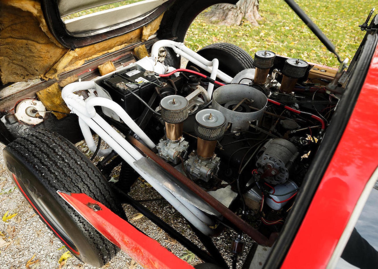 Angetrieben wird der Molzon von der 2,7-Liter-Version des Sechszylinder-Boxers aus dem Chevrolet Corvair. Im GT38 soll die Maschine mehr als 200 PS haben (Standard im Corvair waren damals 142 PS – und als Turbo dann 180 PS), das dürfte dann tatsächlich für ausgezeichnete Fahrleistungen sorgen. Geschaltet wird selbstverständlich manuell, verbaut ist ein 5-Gänger aus einem zeitgenössischen Porsche 911 S.
