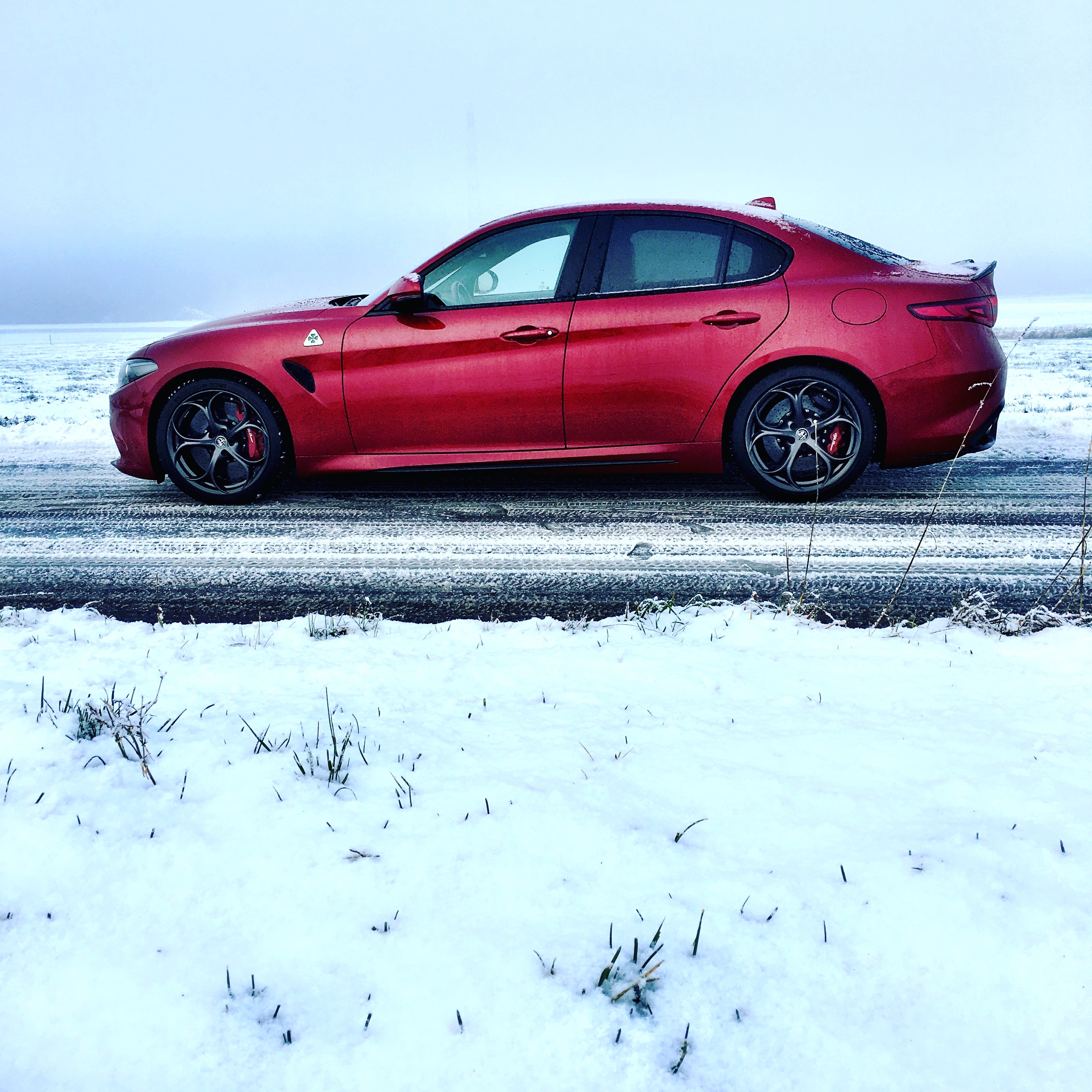 Reichlich fahren durften wir die böse, böse Giulia schon, auch auf der Rennstrecke, auch im Stau, im Schnee, am Berg, auf der deutschen Autobahn, sie war mit dabei auf unserer Tour #theitalianjobs (als Automat), kürzlich hatten wir wieder eine über einen längeren Zeitraum, auf Winterreifen, dafür händisch geschaltet. Und in diesem dunklen Rot. Das irgendwie die richtige Farbe ist für dieses Fahrzeug, nicht hell leuchtend, mehr so ein wenig: dreckig. Das passt, sie ist zwar schon eine Diva, die Giulia als QV, aber sie ist halt auch ein Arbeitstier, sie will getrieben werden, sie verlangt danach, dass die Leistung des 3/4-Ferrari-Motors eingefordert wird, sie will Lärm machen – und Freud‘.