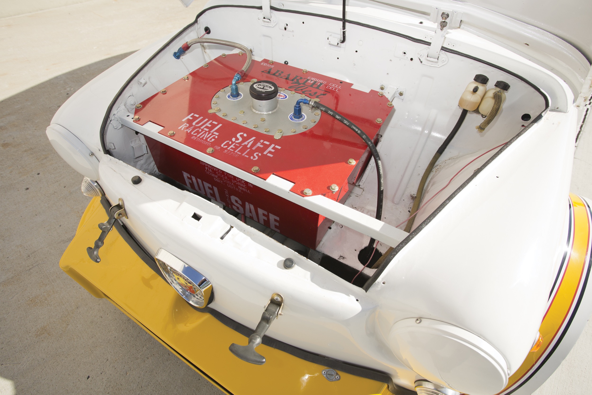 Im Sommer 1960 präsentierte Fiat den 600D. Der hatte neben vielen anderen Verbesserungen auch einen grösseren Motor, 767 cm3, die Leistung stieg auf 29 PS. Da musste Abarth selbstverständlich sofort reagieren, und es entstand der 850. Dass es gerade 847 cm3 wurden, die perfekt in die von den italienischen Rennsportbehörden neu geschaffene Klasse mit bis zu 850 cm3 Hubraum passte, war ganz sicher nur ein Zufall, auch wenn die guten Beziehungen von Carlo Abarth zu einigen Funktionären ein offenes Geheimnis waren. Abarth offerierte drei Versionen, den 850 mit 52 (bei 6000/min) für 985’000 Lire, den 850S mit 54 PS (bei 6300/min) für 1’025’000 Lire, und schliesslich den nicht homologierten 850SS mit 57 PS. Bereits im Frühling 1961 wurde das Programm wieder geändert, im Angebot stand nun nur noch der 850TC mit 52 PS – und einem neuen Preis von nur noch 850’000 Lire (das waren die ersten Auswirkungen des neuen Vertrags mit Fiat). Aber damit nicht genug: Im September 1961 gewann Abarth die 500 Kilometer auf dem Nürburgring mit einem souveränen 1-2-3, die Verkäufe gingen rasant nach oben, und schon im November wurde der 850 TC Nürburgring zu einem Aufpreis von 50’000 Lire angeboten, mit jetzt 55 PS, deutlich verbessertem Fahrwerk und Scheibenbremsen rundum. Die problemlos verkauften 1000 Exemplare sicherten dem Abarth die Homologation – und war für die eh nicht vorhandene Konkurrenz ein Schock. (Das Fahrzeug soll ein 66er 1000 TC sein, in der schmalen Variante.)