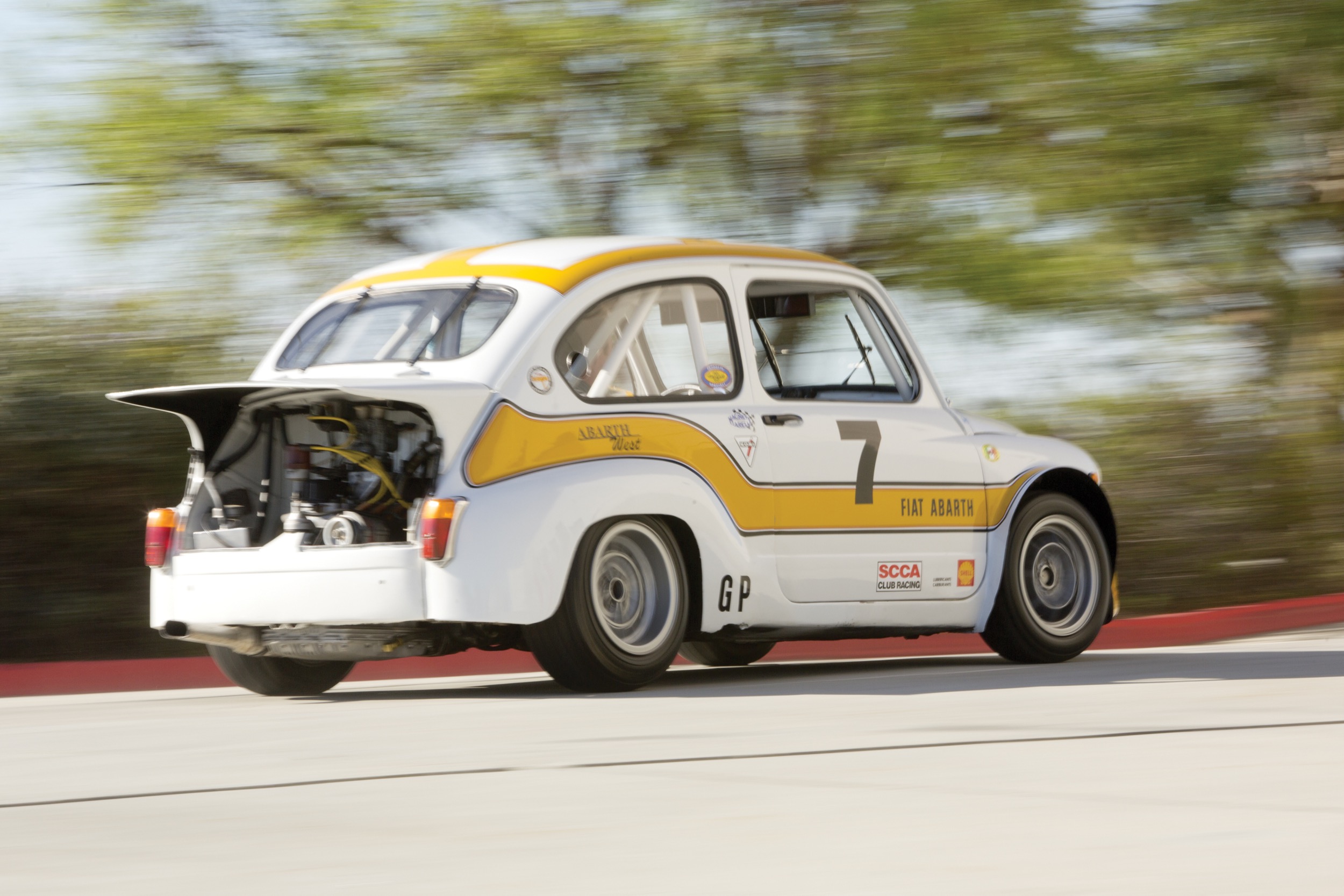 Es ist heute aber auch nicht ganz so einfach, gutes historisches Material von simplen Nachbauten zu unterscheiden. Zwar bringen solche Abarth nicht das ganz grosse Geld, doch die Versuchung ist trotzdem gross, einen braven 600 in ein böses Monster umzubauen. Und es ist ja auch nicht besonders schwierig, denn genau das machte Abarth ja auch. Sollte man sich die Anschaffung überlegen, dann braucht es unbedingt die (seltenen) Spezialisten – das Fahrzeug unten, zum Beispiel, wird als 67er 1000 TC bezeichnet, verfügt aber über den oben beschriebenen offenen Motorabdeckungsspoiler – den es damals noch gar nicht gab. Und der wirklich sehr, sehr rar ist (weil sehr schnell wieder verboten). Doch in erster Linie geht es ja um: Fahrfreud’.