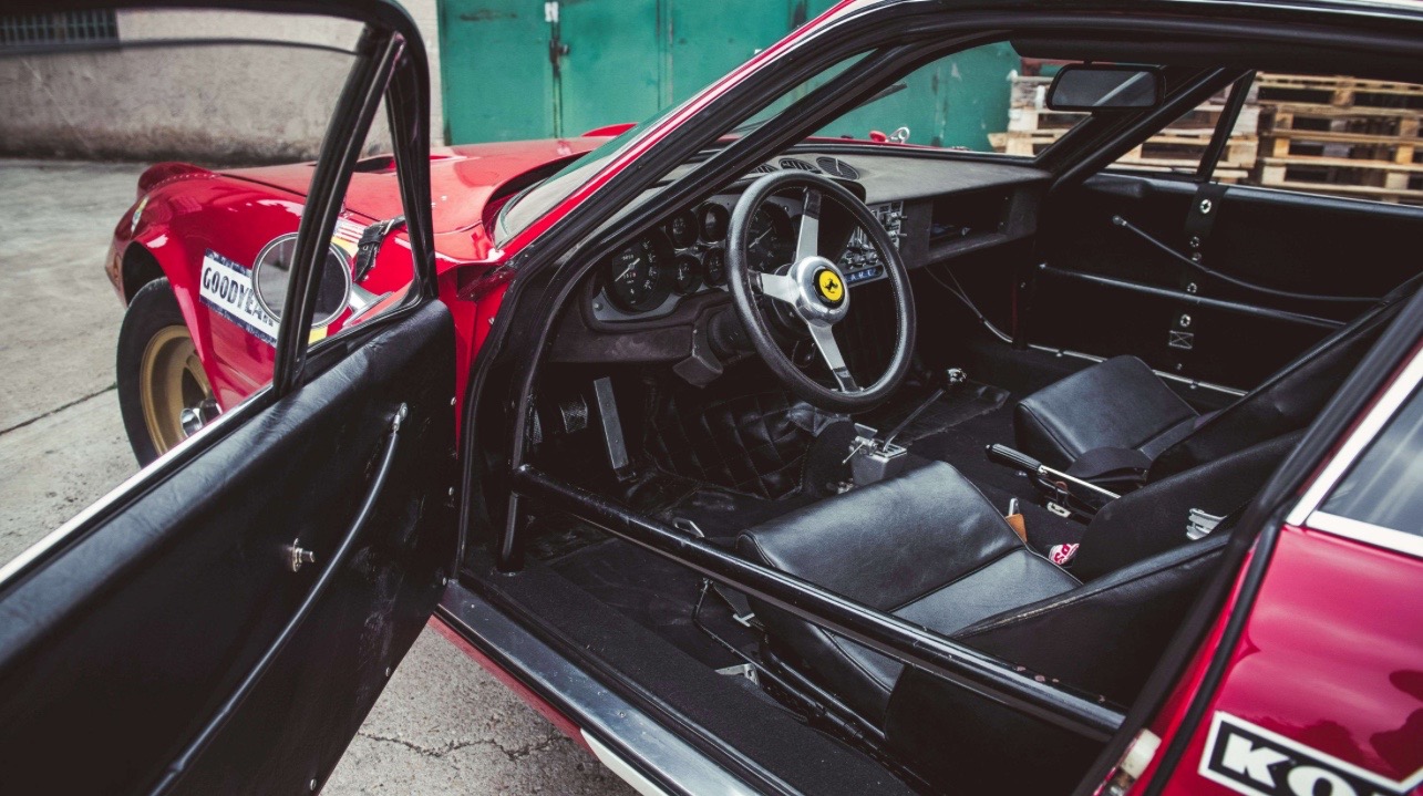 Nochmals, kurz: als erster Daytona im Renngewand gilt Chassisnummer #12547, gebaut im Jahre 1969 für die 24 Stunden von Le Mans. Der Wagen – mit Alu-Karosserie und Klimaanlage – war allerdings wenig erfolgreich, er schaffte es gar nicht erst an den Start. Luigi Chinetti und sein Rennteam N.A.R.T. glaubten aber trotzdem an die Renntauglichkeit des 365 GTB/4 (wohl auch deshalb, weil er sich in den USA bestens verkaufte), also wurde ein zweites Exemplar bestellt, eben: 12467 (gemäss Chassisnummer also älter als das erste Fahrzeug). Chinetti bezahlte am 10. Juni 1971 genau 11’630 Dollar direkt an Ferrari. Ob er auch etwas für die Arbeiten am Rennwagen, die von der Carrozzeria Sports Car in Maranello ausgeführt wurden, bezahlen musste, ist nicht bekannt. Hingegen weiss man, welche Arbeiten von CSC an dem Fahrzeug mit Stahl-Karosserie, das dem Gruppe-4-Reglement genügen musste, ausgeführt wurden: Umbau für und Einbau aller Sicherheitsmerkmale (also Not-Stop, Überrollbügel etc.), Plexiglas-Fenster (ausser Windschutzscheibe), Seiten-Auspuff, grössere Front-Lampen. Zusätzlich wurden die Kotflügel verbreitert und kleine Spoiler angebracht – es ist allerdings nicht anzunehmen, dass Carrozzeria Sports Car den Wagen ausführlicherer testete. Rennfertig, also mit 120 Litern Benzin, wog 12467 immer noch heftige 1514 Kilo. Die serienmässige Zwölfzylinder-Maschine mit 4,4 Liter Hubraum soll etwa 400 PS stark gewesen sein – mindestens…