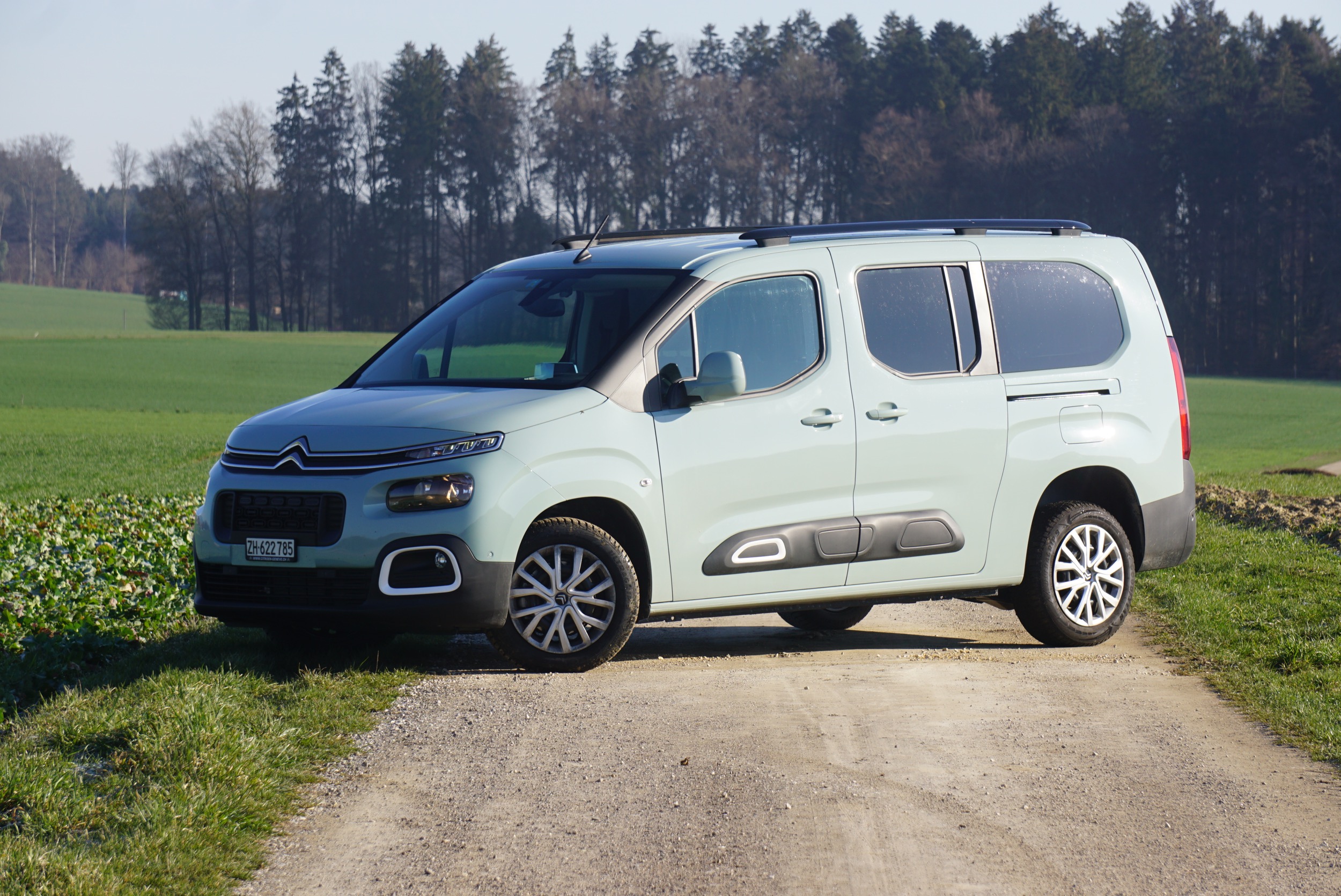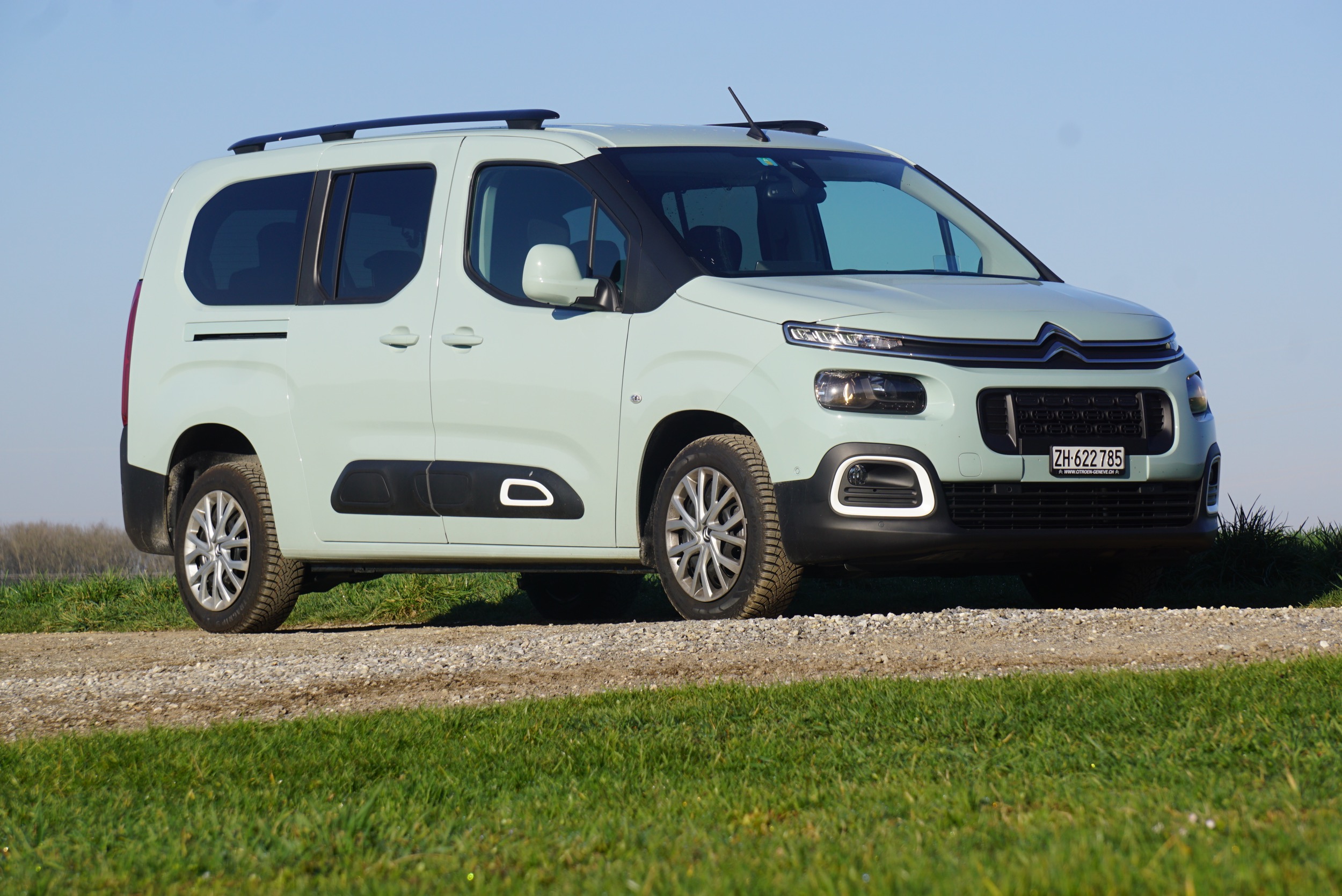 Schauen wir uns doch einmal ein paar Zahlen an. Wir bewegen einen XL, also den Siebensitzer, der 4,75 Meter lang ist, (mit Spiegeln) 2,11 Meter breit und (mit Dachreeling) 1,88 Meter hoch. Wird der Beifahrersitz abgeklappt, dann steht eine Innenraumlänge von 3,05 Metern zur Verfügung – so hoch/lang ist kein Ikea-Büchergestell. Ohne dritte Reihe (also ohne die zwei hinteren, sehr einfach demontierbaren Einzelsitze) bleiben hinten immer noch 1,35 Meter Platz zur Verfügung, zwischen den Radkästen sind es 1,20 Meter, in der Höhe 1,13 Meter – und ein Ladevolumen von 1538 Litern. Klappt man auch die zweite Reihe um und belädt bis zum Dach, dann sind es stolze 2693 Liter. Nehmen wir zum Vergleich einen Citroën C5 Aircross – nein, das tun wir hier besser nicht. Auch in Sachen Geld lassen wir den Vergleich besser bleiben, nennen aber ein paar ebendieser für den Berlingo. Die günstigste Version mit 4,4 Metern Länge und dem 110-PS-Benziner kostet nur gerade 23’800 Franken – wir haben halt das Beste aus dem Programm, den 130-PS-Diesel mit dem 8-Gang-Automaten und der edelsten Ausstattung «Shine»; dafür sind allerdings schon 36’500 Franken fällig. Einverstanden, das ist dann schon wieder viel Geld für eine reine Vernunftsentscheidung, doch unser Berlingo ist ja mehr – fast so ein bisschen ein Freund der Familie.