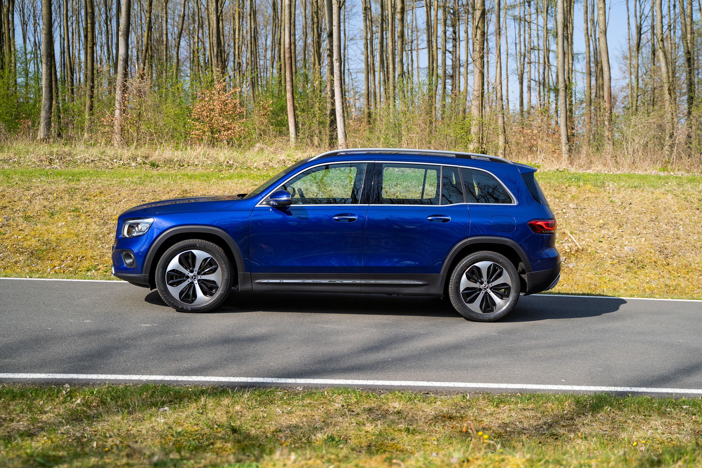 Es ist die Farbe. Diese tiefe, andererseits aber sehr sehr kräftige Blau. Dazu dieser Schimmer. Wenn der Mercedes-Benz GLB 250 4matic so in der Sonne steht, man ist wirklich entzückt ob dieser Farbe.