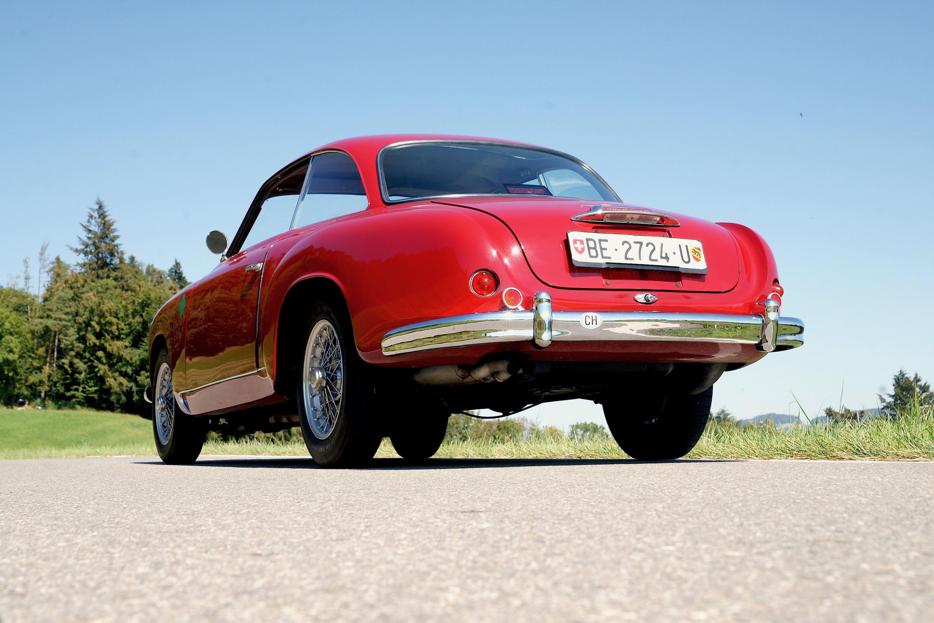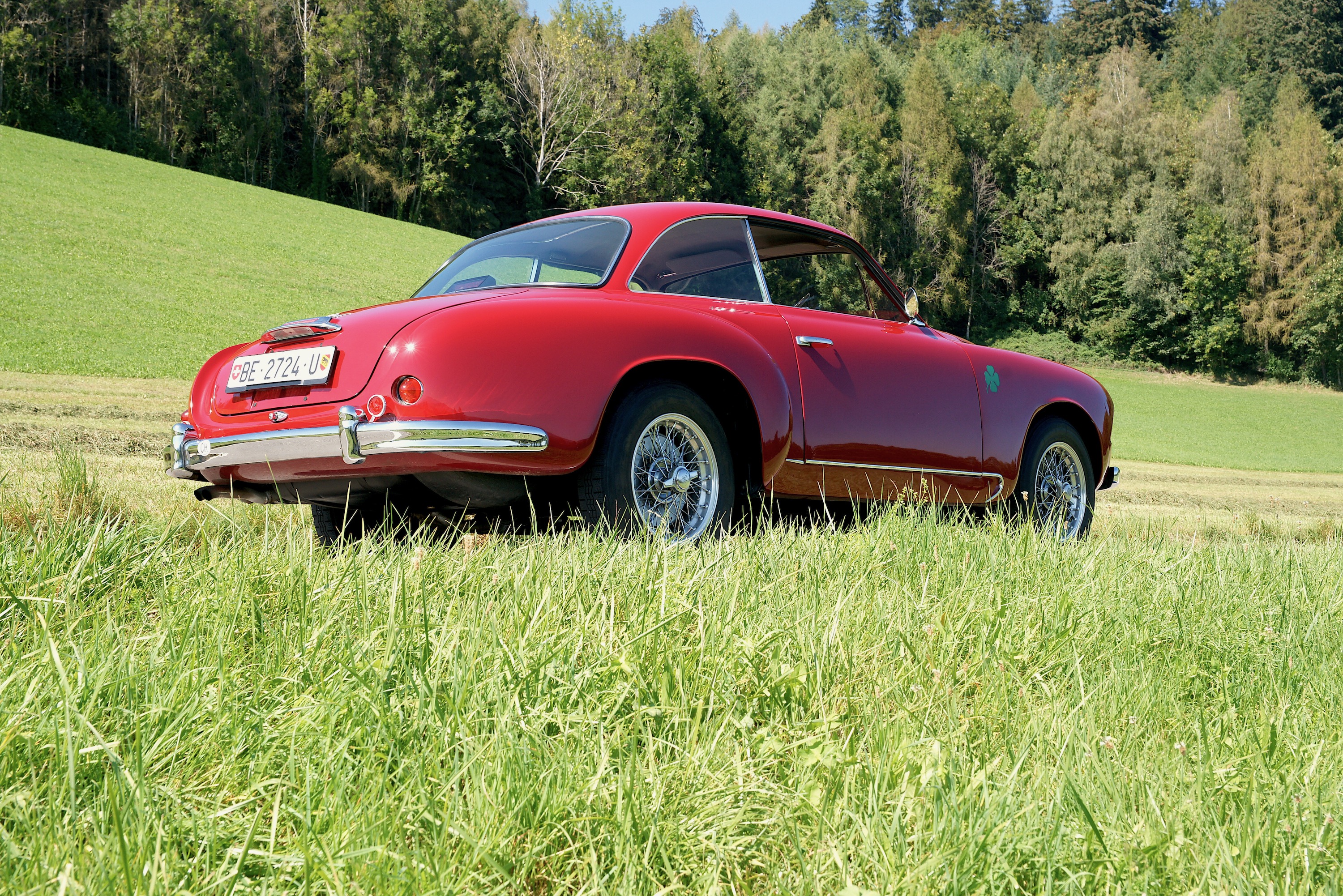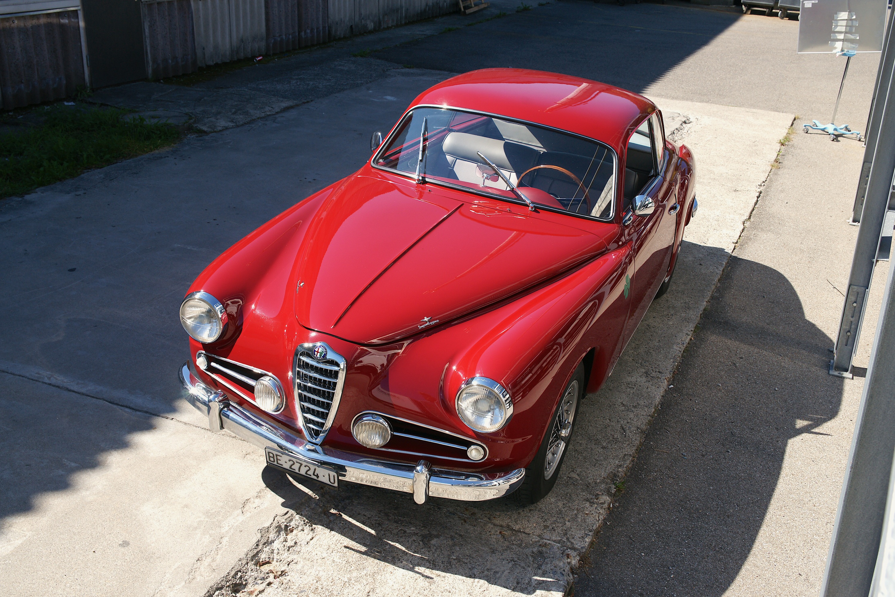 SS steht für Super Sprint, also einen 1900er mit 2-Liter-Motor, 112 PS (obwohl es den offiziell erst ab 1956 gab, unser Fahrzeug aber Jahrgang 1955 hat). Das tönt jetzt nicht nach einer frivolen Party auf der Strasse – und das ist es auch nicht. Zumindest nicht nach heutigen Standards, jeder Kleinwagen wird dem Alfa sein banales Heck zeigen. Und es ist so etwas von egal, denn der Vierzylinder mit seinen zwei obenliegenden Nockenwellen liefert dafür eine schön lineare Kraftentfaltung, singt dazu ein wunderschönes, metallisches Lied, man fühlt sich mittendrin, nicht voll daneben. Gefragt ist vorausschauendes Fahren, man muss die Strasse spüren, wohin führt die Kurve, was verträgt sie, denn man wird nicht von einer Drehmomentwand gerettet, der es völlig egal ist, ob man nun in der Zweiten hochtourig durch die Biegung fräst oder ihn in der Fünften gerade noch so rumwürgt. Bist Du im Alfa im falschen Gang, bist Du langsam; bist Du im richtigen, dann bedenke, dass Du das Lenkrad bitte mit beiden Händen festhalten musst. Man muss also mitdenken – und das ersetzt dann auch gleich alle Assistenzsysteme.