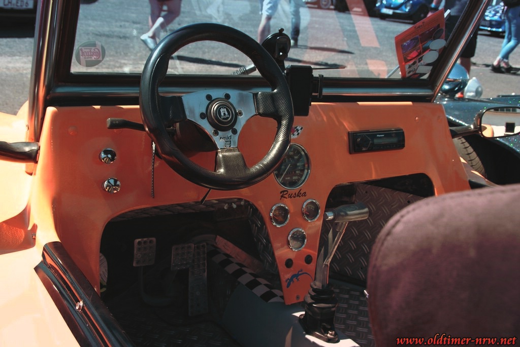 Umso schöner ist es, dass am letzten Sonntag soviele Buggys den Weg auf das Gelände von Mo´s Bikertreff gefunden haben. Der Umstand, dass seinerzeit die Erbauer viel, viel Platz für die eigene Kreativität hatten macht die Buggy Bewegung so interessant. Der Hersteller lieferte die Karrosse, ein alter Käfer das Fahrgestell, Technik und Motor und beim Rest hatte der Erbauer sozusagen „freie Hand“. Fast wie beim Hot Rod gab es hier nahezu unendlich viele Möglichkeiten sein Auto zu modifizieren.