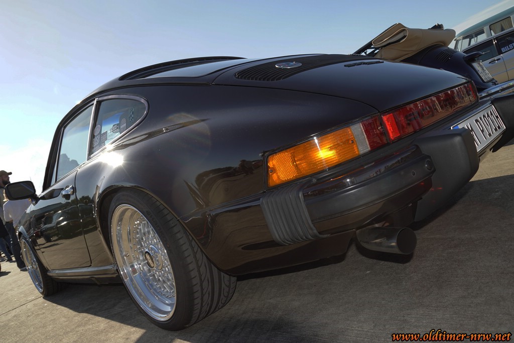 Aber auch sonst fanden sich weitere tolle Autos auf dem Fluggelände ein. Da war zum Beispiel der silberne Renault R5 Turbo, den ich bereits vom Treffen in Wegberg kannte oder der seltene R15 TS, ein tolles, aber recht skurill anmutende Renault. Seine Ähnlichkeit zum amerikanischen `71er Plymouth Roadrunner macht ihn zu einer Designikone. Desweiteren habe ich einen 911er gefunden, der mir mal richtig gut gefiel. Seine dunkelbraune Farbe und, oh wunder, mal keine Fuchsfelgen, sondern ein paar schöne Kreuzspeichen mit ordentlich tiefen Fahrwerk machten ihn für mich zum Hingucker.