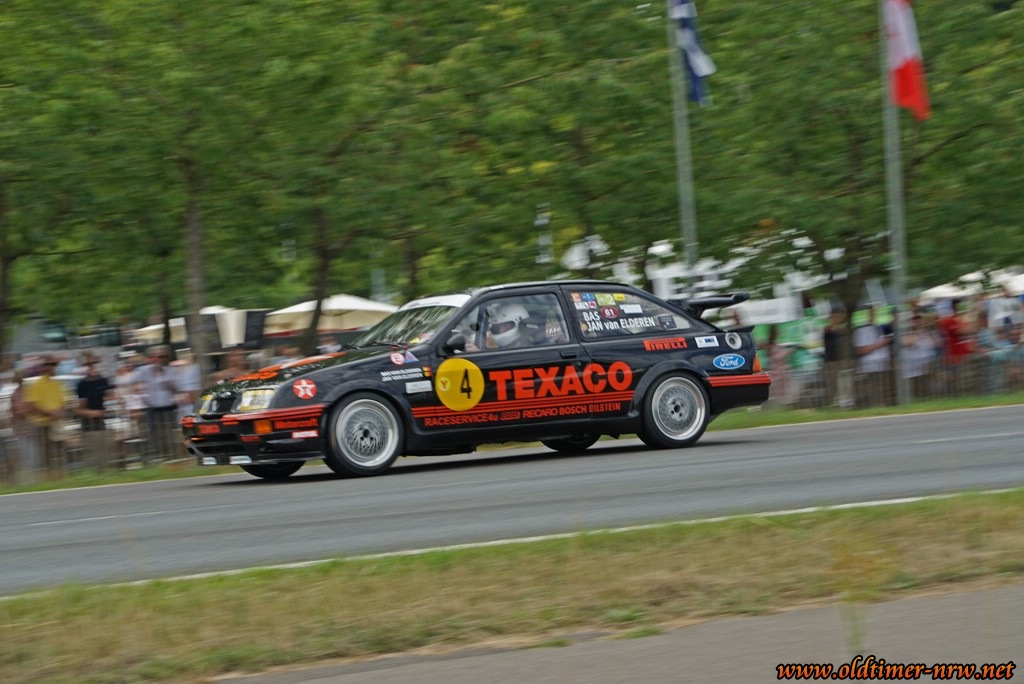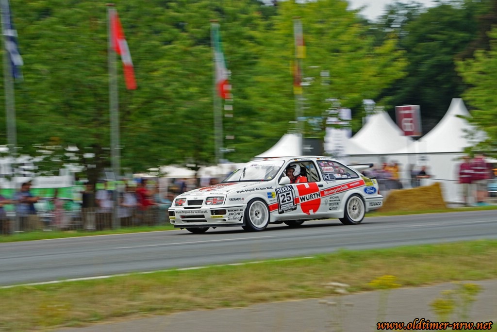 Selbst Ford war in diesem Jahr erfreulich präsent. Zum einen stellte die Classic Abteilung der Ford-Werke wieder den bekannten Sierra und Capri aus und liess diese über den Rundkurs fahren, zum anderen gab es in diesem Jahr „50 Jahre Ford Capri“ zu feiern. Viele Modelle aller Generationen standen hier im Infield der „Rennstrecke“, darunter sogar zwei selten Capri Cabrios.