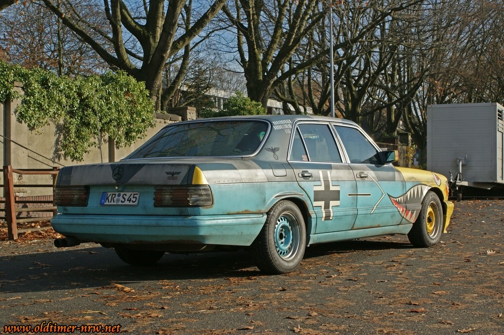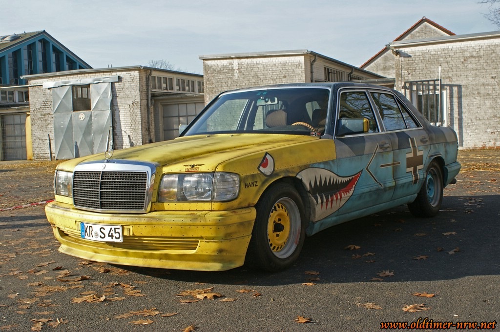 Eine Überraschung war die Mercedes S-Klasse, die im Design eines alten Kampfflugzeugs einer Messerschmidt ME 109 daherkam. Das gesamte Fahrzeug wurde samt der vielen Nieten komplett handbemalt. Ein toller Anblick. Ich habe mit dem Besitzer natürlich gesprochen und einige Fotos für eine Fahrzeugvorstellung gemacht. Sollte der Besitzer sich, wie besprochen bei mir melden, dann werden wir hier noch einiges mehr über das Fahrzeug erfahren. Mich würde es jedenfalls sehr freuen.
