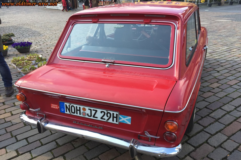 Zu sehen waren eine Menge Triumph aller Generationen, aber auch Healeys, Sprite, Lotus Seven und auch Minis. Dazu kamen auch eine ansehnliche Menge an wertvollen Jaguar. Mein persönliches Highlight war der kleine, hierzulande sehr seltene Hillmann Imp., der uns leider erst auf der Rückfahrt entgegen kam. Glücklicherweise konnte mir ein Bekannter aushelfen, der mir seine Bilder von dem kleinen Renner zur Verfügung stellte. Danke Rüdiger!