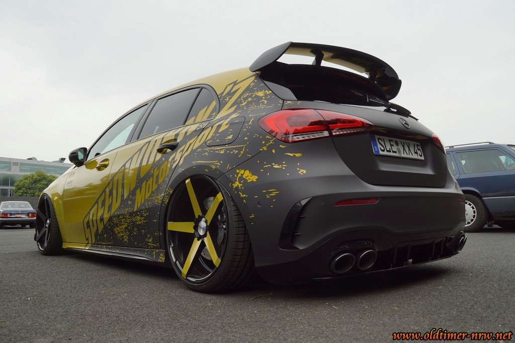 …und am Sonntag war ich nun zum vierten Male dabei. Von der orignalen Heckflosse über die verbreiterte Kiez-Ludenkarre aus den 80ern bis zum schwerst getunten AMG C53 Coupe der Neuzeit war alles vorhanden was das Herz eines „Sternenkriegers“ höher schlagen lässt. Da konnte es wirklich nicht langweilig werden. Ich habe mich naturgemäß bei den Bildern wieder mehr auf die Young- und Oldtimer focussiert.