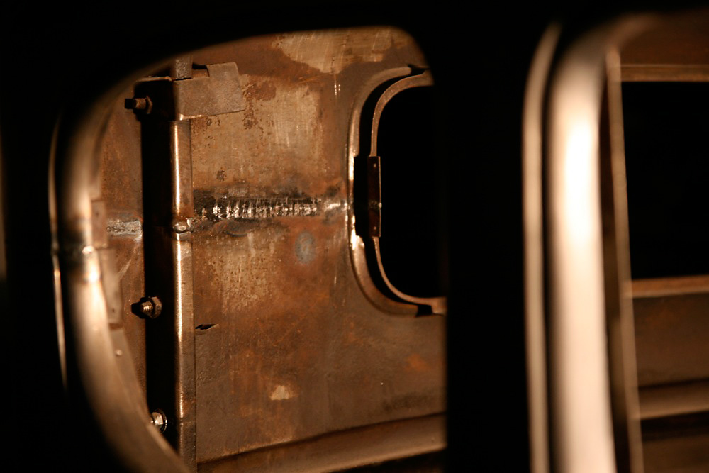 They started with a decent stocker that was looking quite good, but it turned out that the lower two or three inches of the body were rusted. Not happy with the fit and quality of some repop panels they had bought, Thomas fabricated his own panels. Now they fit perfectly.