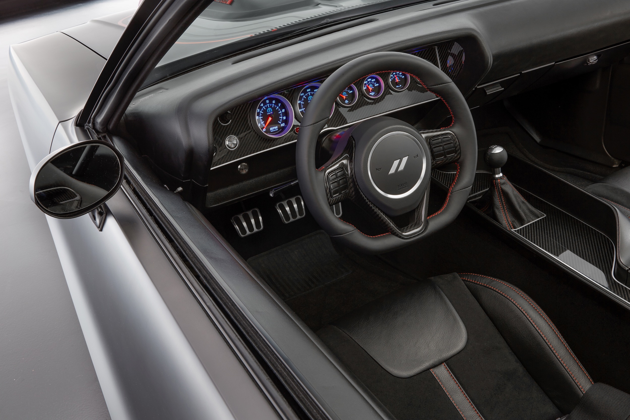 Interessant ist sicher, dass sich das manuelle 6-Gang-Getriebe aus der Viper mit dem Original-Motor kombinieren lässt. Den hat man auf 485 PS gebracht (sagt aber nicht, um was es sich genau handelt, könnte durchaus ein «echter» Hemi sein), über einen coolen Scoop mit etwas mehr Frischluft versorgt – und die Abluft entweicht durch eine neue Abgasanlage. Am Fahrwerk wurde geschraubt – und die Bremsen stammen von Brembo. Die 19-Zöller vorne und 20-Zöller hinten stammen aus dem Hellcat-Programm, die Sitze aus der Viper. Und so weiter.