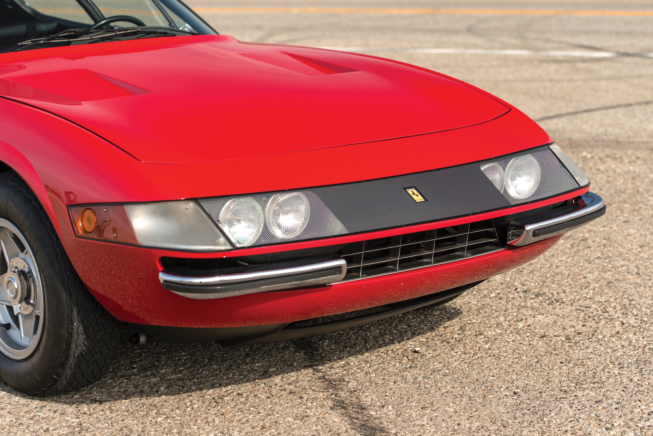 Noch eine entscheidende Veränderung war dem amerikanischen Markt geschuldet: die Schlafaugen. Die ersten Exemplare verfügten noch über Plexiglasscheiben vor den Scheinwerfern, doch in den USA durften vor den Scheiben keine Scheiben mehr sein, also wurde das Plexiglasband durch Klappscheinwerfer ersetzt. Enzo selber, heisst es, habe entschieden, dass alle Daytona diese Dinger erhalten müssen, nachdem er die ersten dieser schweren Augenlider gesehen hatte. Doch der «Commendatore» trug ja auch eine fette Brille.