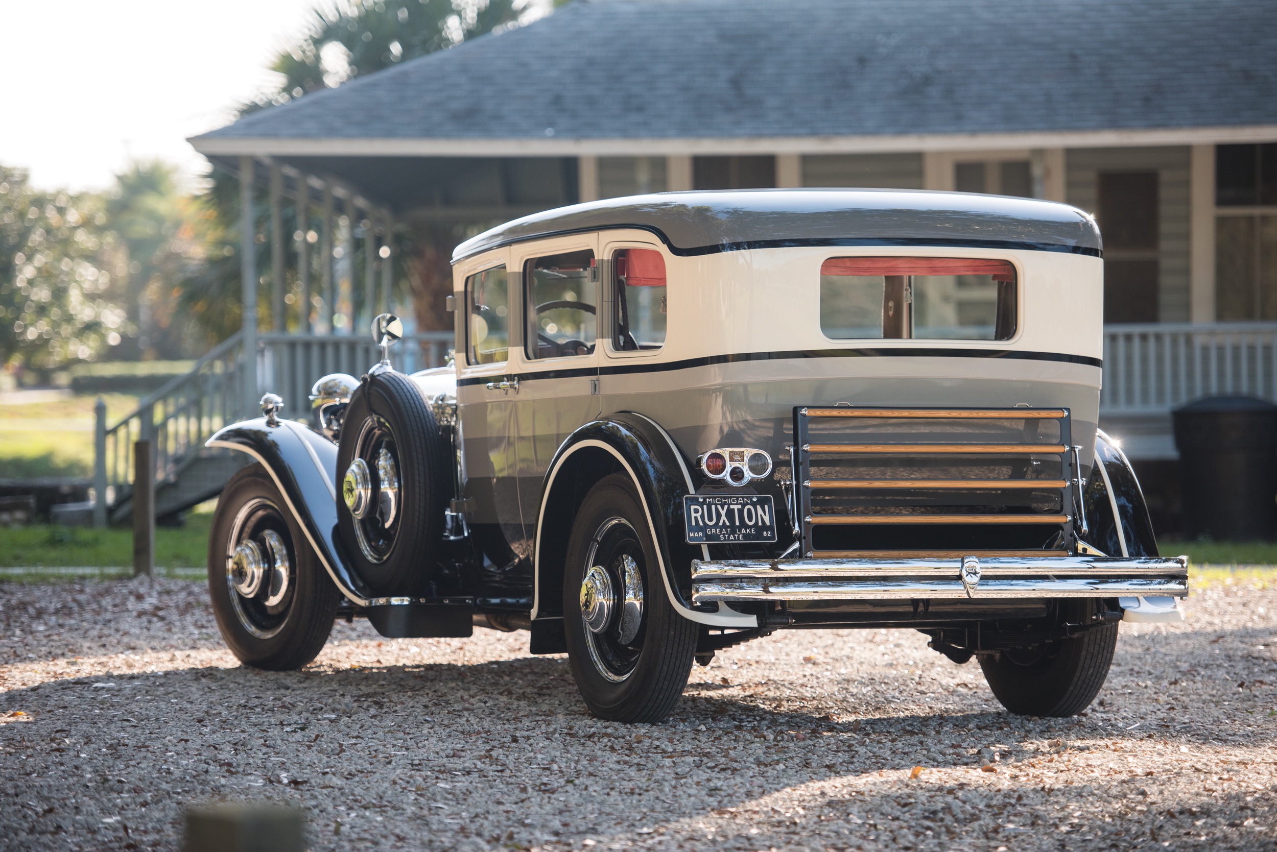 Aber es war ein grossartiges Fahrzeug, das da entstand. Das Design des Ruxton Model C stammte von Joseph Ledwinka, dem Cousin des berühmten Tatra-Designers – und war für seine Zeit schlicht grossartig. Die Bauweise mit dem Frontantrieb ermöglichte es, die Linien etwa 25 Zentimeter tiefer anzusetzen als bei den damals zeitgenössischen Fahrzeugen, was eine grossartige Eleganz ergab. Einige Fahrzeuge waren in der hier zu sehenden «rainbox»-Lackierung, die Künstler Joseph Urban entworfen hatte, bemalt – noch so ein einmaliges Feature damals.