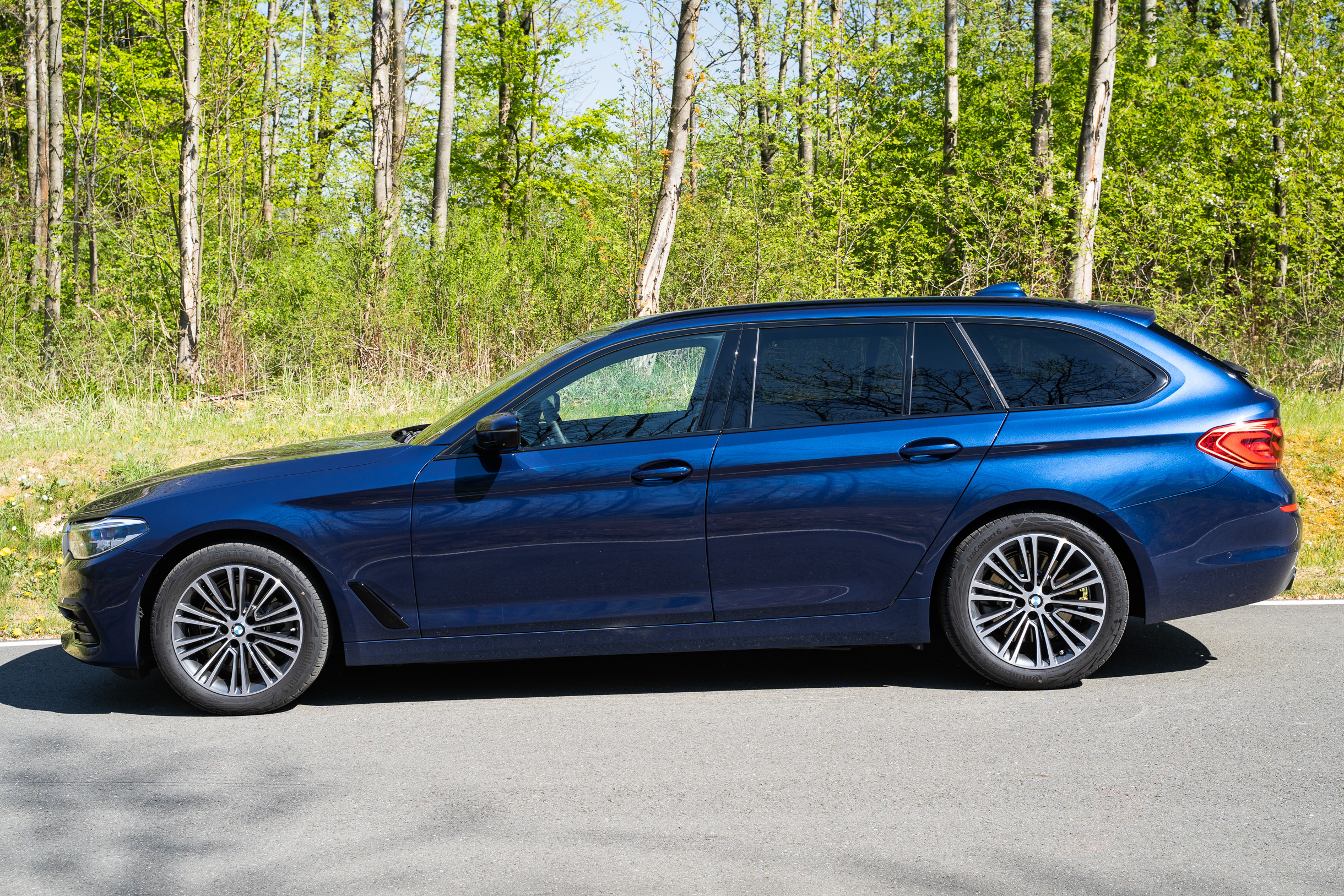 Wir reden vom BMW 520d xDrive Touring Sport Line Mild Hybrid. So ganz sicher sind wir nicht, ob wir die Modellbezeichnung korrekt wiedergegeben haben, aber so in etwa heißt der blaue Kombi. Zur Aufschlüsselung: es ist ein Fünfer-Kombi mit zwei Liter Dieselmotor, Allradantrieb, sportlicher Ausstattungslinie und – ganz neu – einer sehr sehr grossen Lichtmaschine.
