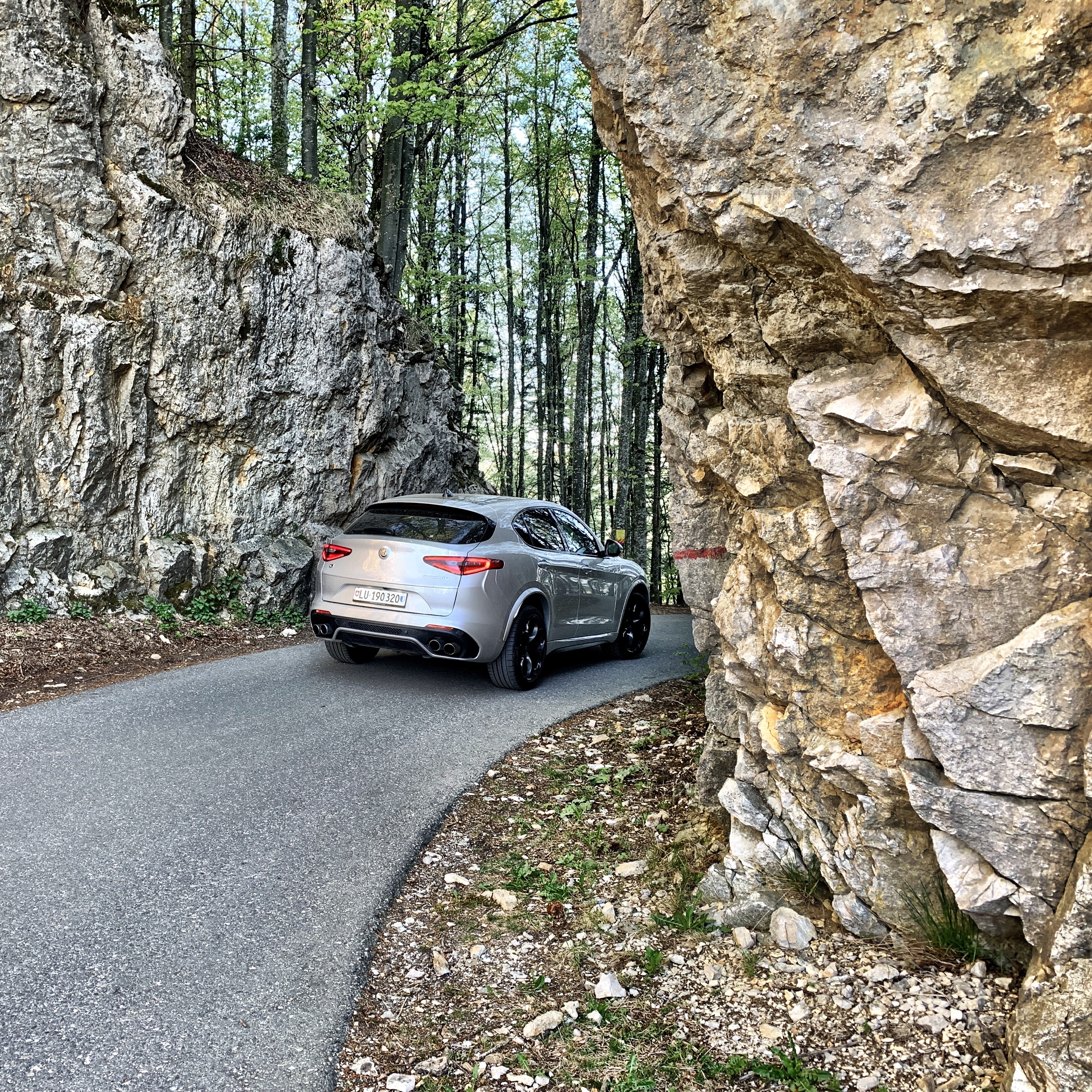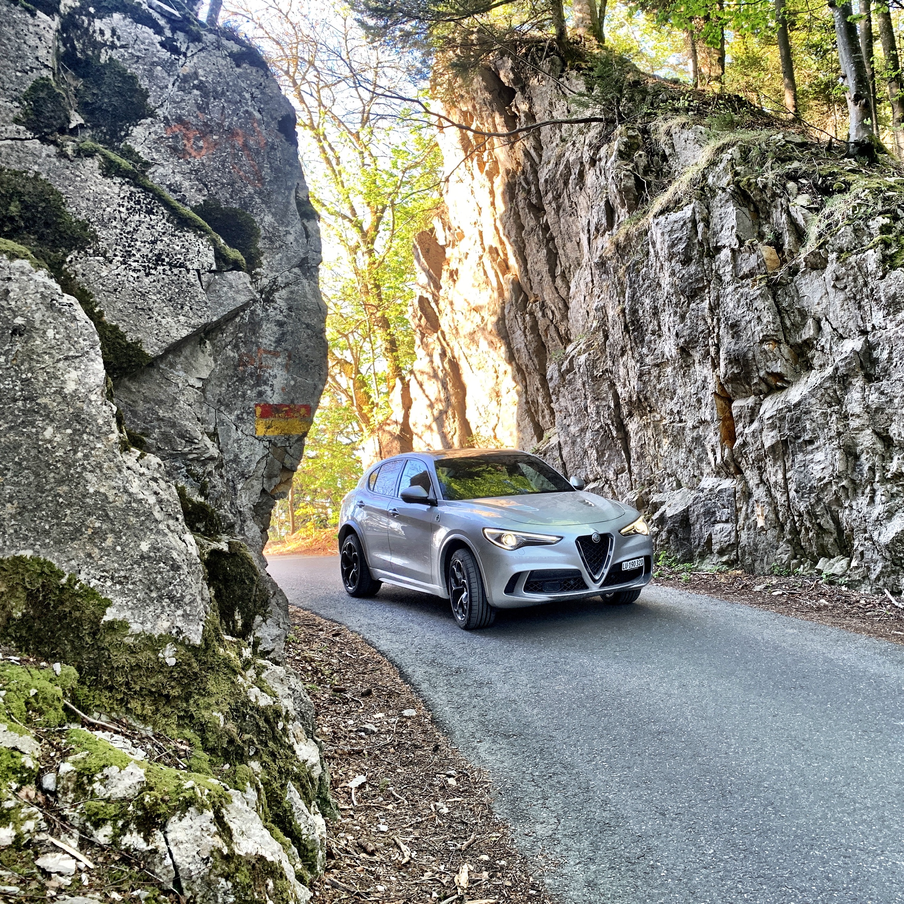 Wir haben verschiedene Teststrecken. Die kürzeste Route führt gleich in der Umgebung über zwei anständige Emmentaler Hügel, die fahren wir mit eigentlich jedem Fahrzeug. Dann gibt es die lange, die können wir nur im Sommer fahren, sie führt über drei oder vier Pässe (Susten, Furka, Grimsel – oder Susten, Gotthard, Nufenen, Grimsel). Und dann haben wir noch die Routen durch den Jura, Balmberg, Weissenstein, Grenchner Berge, in den verschiedensten Variationen. Die sind ziemlich grob und auch nicht für jedes Gefährt wirklich tauglich, denn die Kurven sowie Gassen sind teilweise sehr eng, der Belag alles andere als vorbildlich. Diesen Frühsommer sind wir oft im Jura gewesen, etwa mit dem Audi RS6, aber auch mit der Alpine A110S, dem Renault Megane RS Trophy-R, dem Abarth 595 Competizione (Testberichte folgen). Und es tut uns selber ein bisschen weh, was wir jetzt hier schreiben: Wohl am meisten Spass hatten wir mit dem SUV von Alfa.