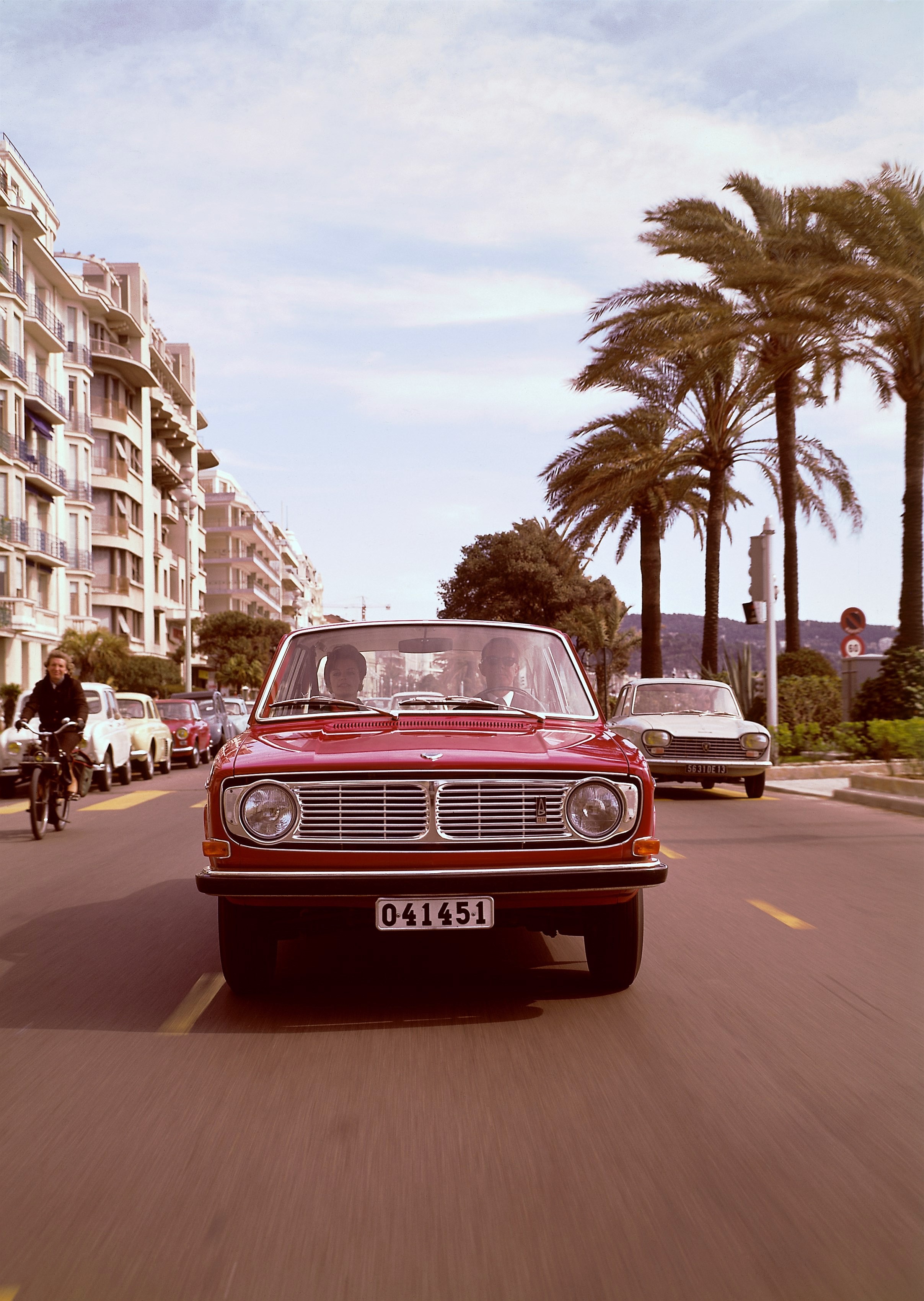 Man würde es dem Volvo gar nicht so recht zutrauen, doch seine Karriere begann wahrhaft dramatisch. Am 17. August hätte er seine Weltpremiere erleben sollen, ein grosser Anlass, zeitgleich in Göteborg, Olso, Kopenhagen und Helsinki. Doch während zwei Tage vorher unter grösster Geheimhaltung drei Kisten mit je einem Volvo 144 in das Veranstaltungslokal in Göteborg gehievt wurden, erfuhr die schwedische Polizei, dass sich zwei Polizistenmörder in einem Kino nebenan in aller Ruhe einen Film anschauten. Die Umgebung wurde abgeriegelt, das Kino evakuiert – und das Geheimnis des Fahrzeugs, über das die Presse schon seit Jahren spekuliert hatte, gelüftet. Die Journalisten hatten dem neuen Volvo während der langen Jahre seiner Entwicklung sogar einen Kosenamen verpasst, Mazou.