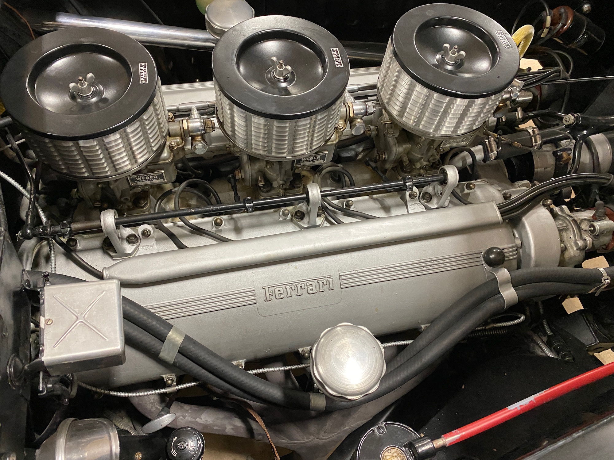 «America», da ist ganz klar, wohin Ferrari zielte. Die ersten «America» waren die 340 America ab 1951 gewesen, es folgte 1952 der 342 America – und 1953 dann der 375 America. Als Basis diente der 250 Europa GT (also: Kastenrahmen, Doppeldreiecksquerlenker vorne, Starrachse hinten, Trommelbremsen), dessen Radstand auf 2,8 Meter gestreckt wurde. Und dann war da natürlich der grosse Motor, nicht der legendäre 3-Liter-V12 von Colombo, sondern die deutlich grössere Version von Lampredi. Im 375 waren es dann 4,5 Liter Hubraum, mit drei Weber-Doppelvergasern (40DCF) und einer Verdichtung wurde die Leistung mit 300 PS angegeben. Es entstanden – wahrscheinlich – elf Exemplare des Ferrari 375 America, sieben (oder acht) wurden bei Pinin Farina eingekleidet, eines (oder keines) bei Ghia, bleiben noch zwei Coupé und ein Cabriolet von Vignale.