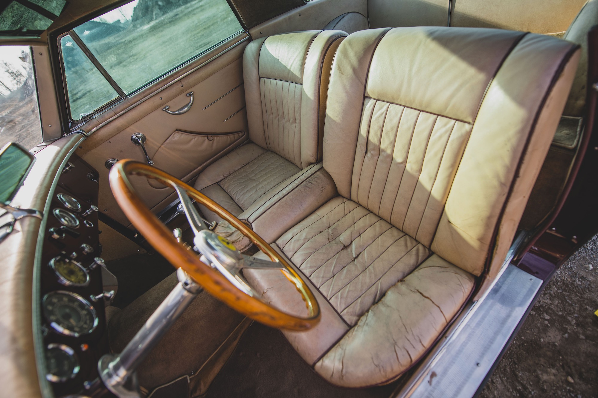Alfredo Vignale, ach – unter den grossen Karossiers war er sicher ein ganz grosser Künstler. Zuerst zeichnete er das Projekt 1:1, dann entstand das Fahrzeug in seinen und den Händen seiner begabten Mitarbeiter direkt ohne weitere Vorlagen direkt auf dem Chassis. Stan Nowak bezeichnete diese Form der Entstehung als «Spontanität der Linien», Vignale hatte keinen genauen Plan, improvisierte, hatte das Auge für die richtige Lösung. In den frühen 50er Jahren war er sicher auch stark inspiriert von den amerikanischen «Dream Cars», doch er fand immer sehr eigenständige, spezielle Lösungen (die heute teilweise als sehr aussergewöhnlich anmuten). Das hier vorgestellte Ferrari 375 America Coupé mit der Chassisnummer 0327 AL ist eines von zwei Modellen, die sich sehr ähnlich sind (das andere war 0337 AL); dieses Exemplar in der für Vignale so typischen Zweifarben-Lackierung (Amaranto/Grau Metallic) entstand auf Bestellung des Amerikaners Robert C. Wilke.