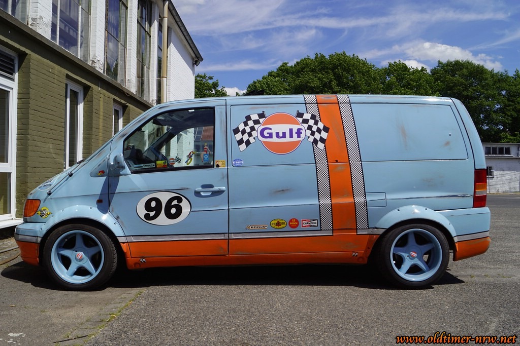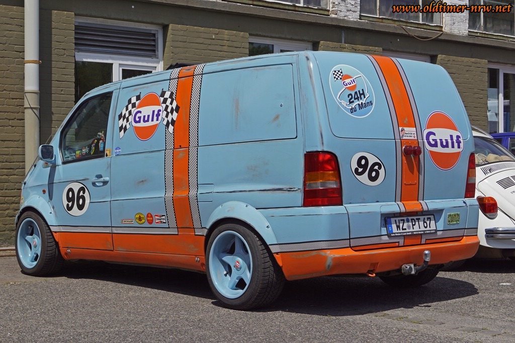 Zu guter Letzt traf ich auf Peter Theobold, einer der ehemaligen „Fusseltuner“ und seinem im Gulf-Look gefusselten Mercedes Vito. Dieses Fahrzeug, (Achtung, gefusselt, nicht foliert!) passt nicht so ganz zum Thema, ist aber auf jeden Fall erwähnenswert, deswegen habe ich ihn mal mit in die Galerie aufgenommen.
