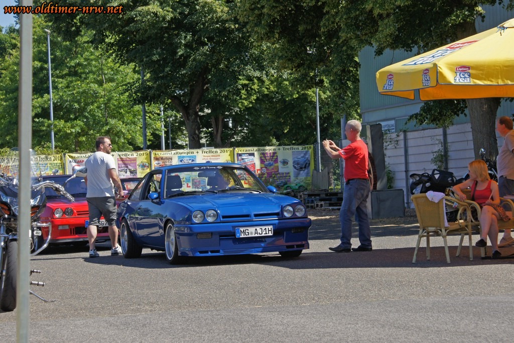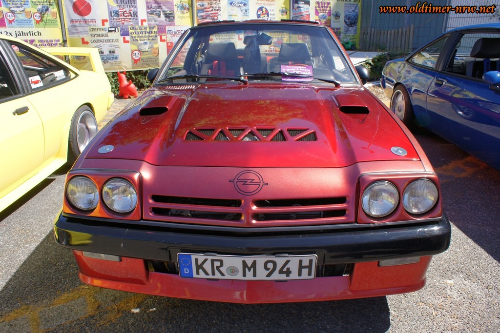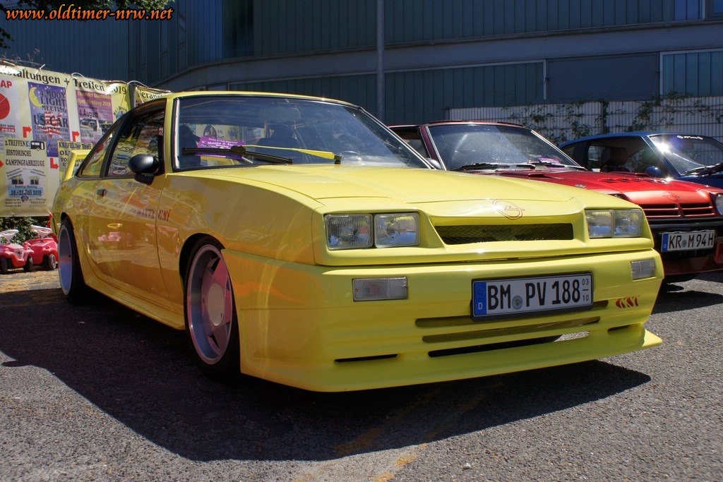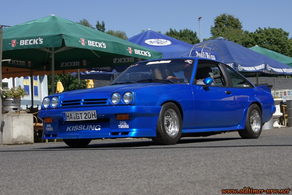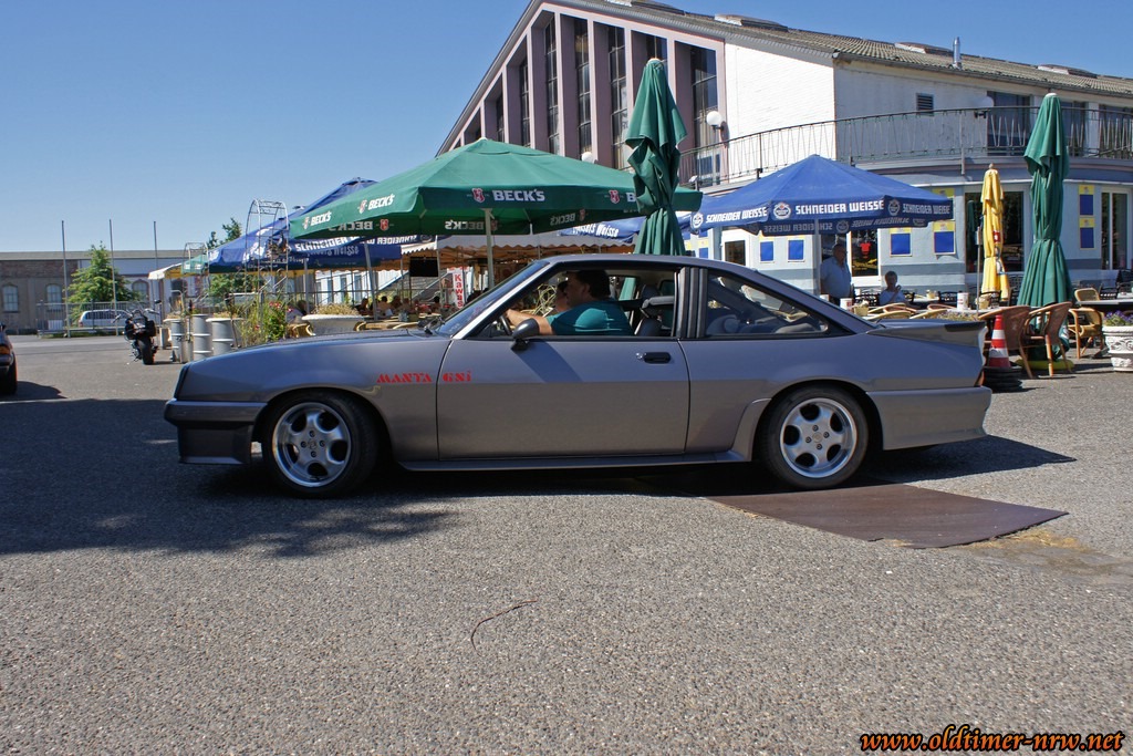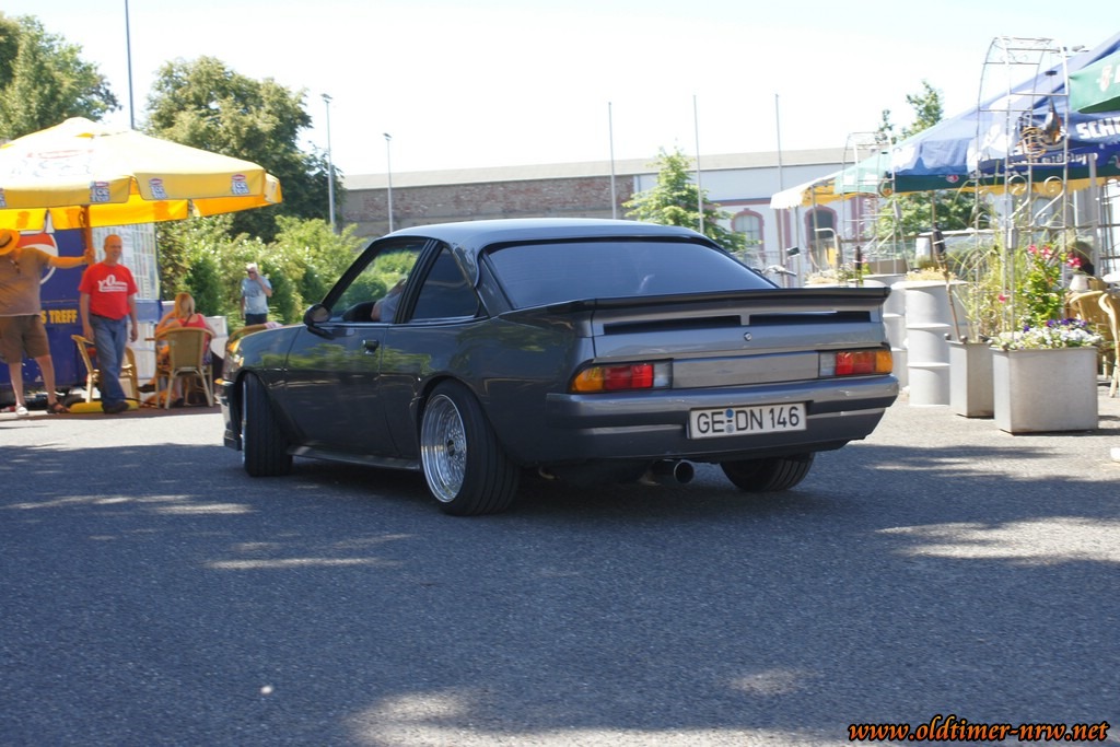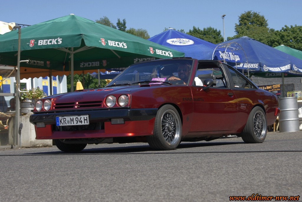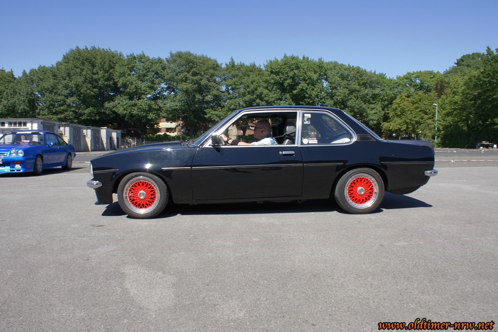 Es ist davon ausgehen, dass die Temperaturen jenseits der 35 Grad durchaus den Einen oder Anderen davon abgehalten haben zu erscheinen. Trotzdem waren doch einige schöne Fahrzeuge zugegen. Denn Opels viersitzige Limousine aus den 70ern hat eine sehr große Fangemeinde. Entsprechend bunt war das Feld der Teilnehmer. Vom verbreiterten Extremumbau, über einem Manta mit herausnehmbaren T-Roof bis zum absolut Original belassenen war alles dabei.