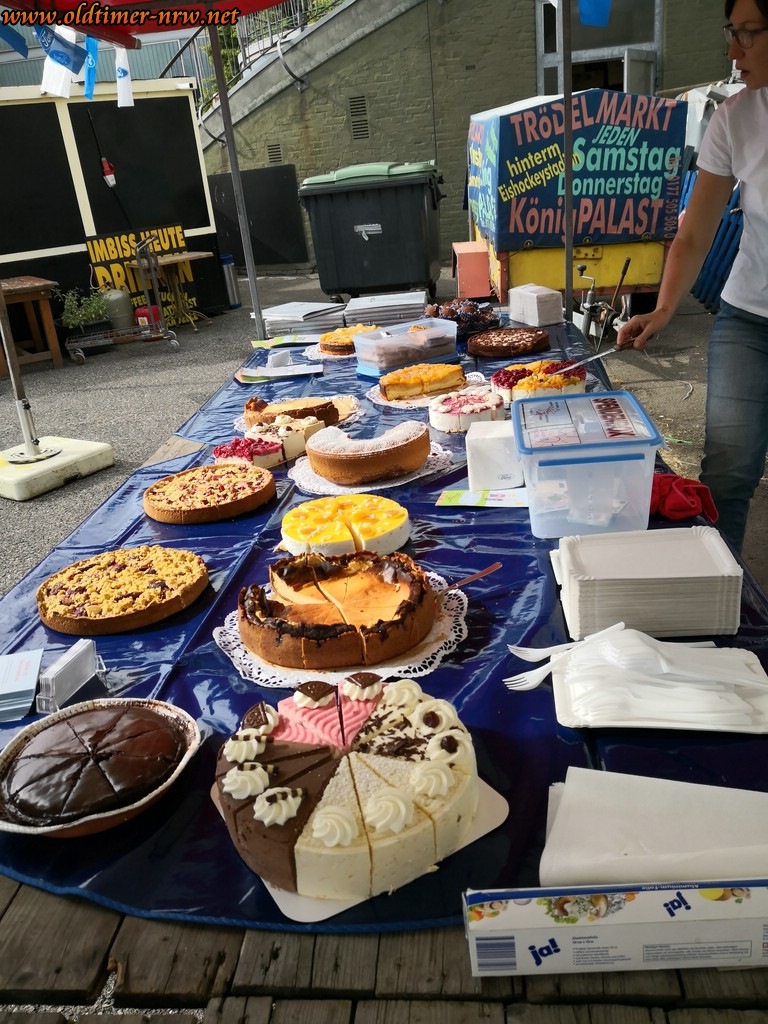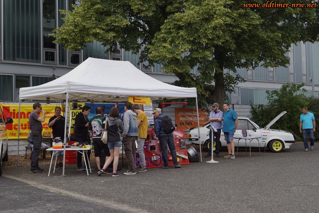 Aber zum Glück war genau das Gegenteil der Fall. Kurz nach 8.00 Uhr hörte es wieder auf zu regnen und es kamen schon die Händler und fingen an aufzubauen und bereits um 9.00 Uhr fuhren die ersten Besucher auf den Parkplatz. Wir waren alle heilfroh, dass so viele Besucher dem Regen getrotzt haben. Insgesamt haben wir 320 Autos gezählt und das ist angesichts des Wetter wirklich phänomenal. Sogar bei den ganz alten Fahrzeugen aus den 30ern hatten wir erstaunlich viel Zuspruch. Damit geht unser erster ganz großer Dank an Euch Besucher, die sich nicht durch die Wettervorhersage haben abschrecken lassen.